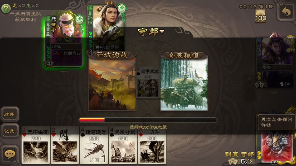 3⃣️所谓对策,相当于划拳,只有当你俩选择同一边时对策生效,反之失败。生效后必须得等到牌进入弃牌堆才能获得,像李傕【亦算】等技能发动则无法获得。