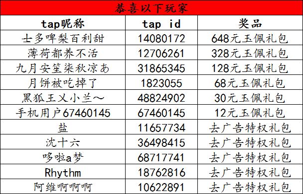 以下是获得去广告特权礼包和玉佩礼包的名单: