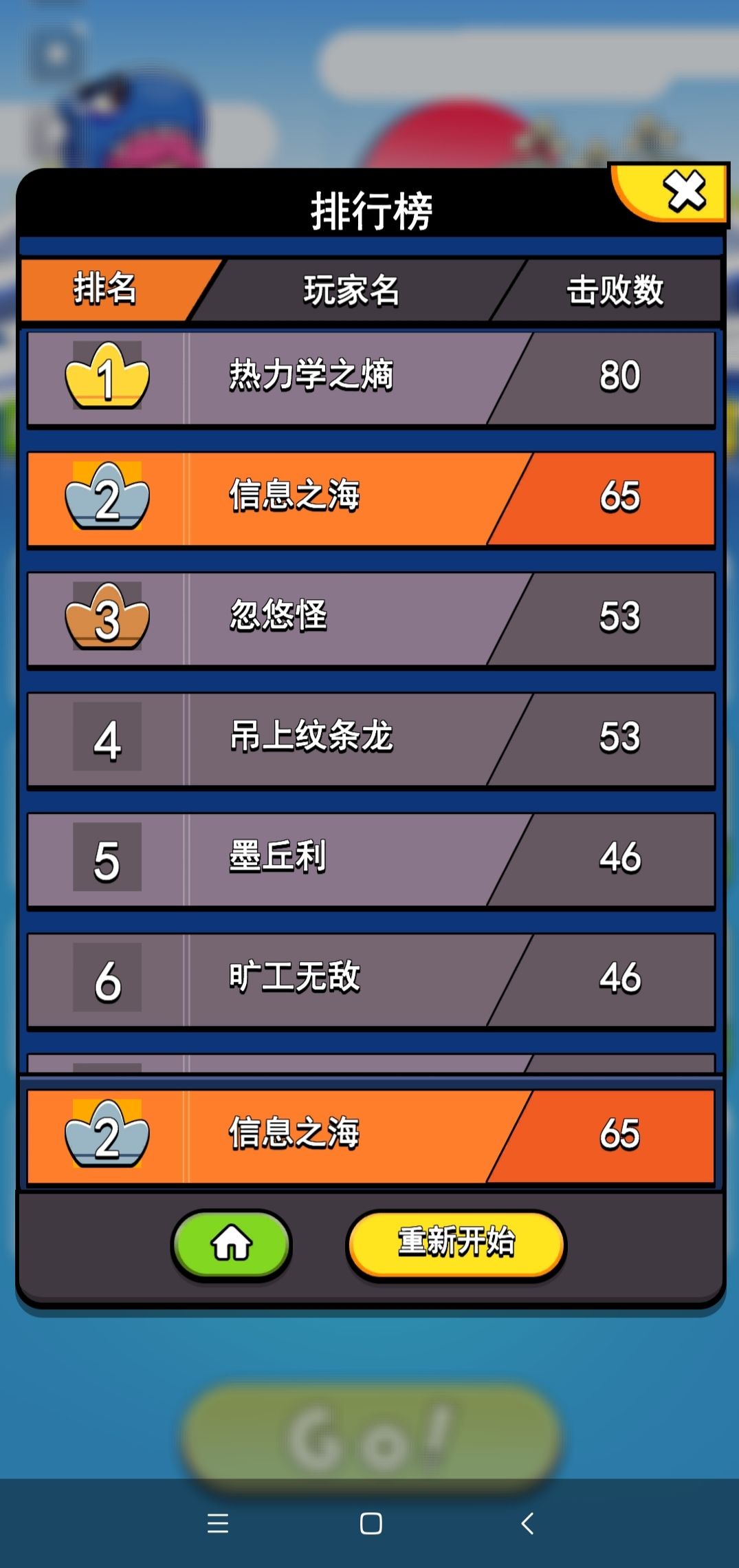 65关信息之海路过,摇到50关左右后面必须一击必杀,不是对面死就是能死。而且必须要有食物翻倍,大概是30w伤害吧。我后面实在摇不出食物了,gg