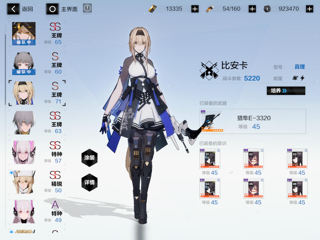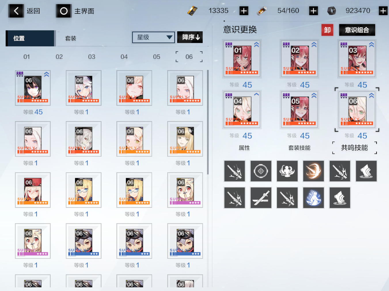 最上面是白毛共鸣 洗了蛮久的 把四核洗出来了(上头产物)别的是几个c 很凄惨 没有武器 基本上现在就只有这些 工具人奶妈意识是齐的 等级没有