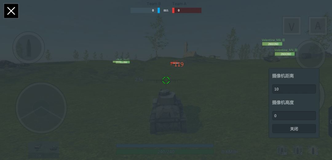 加入调整视角功能,可在进入战斗后点击右下角进行调整。(摄像机高度可用来调整部分模组车辆的视角)