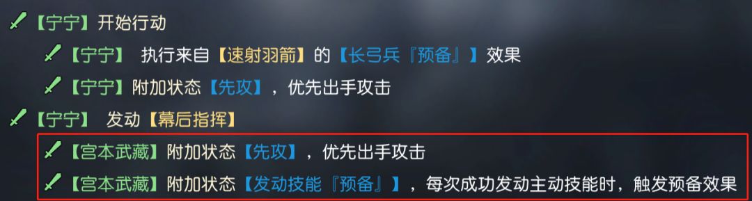 宁宁的自带技能并不算稳定,只有在成功发动技能时才会为主将施加先攻,且持续状态仅有一回合。但该技能拥有一个触发效果,当主将在先攻状态中释放主动技能时,会对敌方叠加1个增伤buff,该状态无失效、无叠加限制,若是能与主动技能释放较频繁的主将配合,该技能的实际提升效果会更有效。