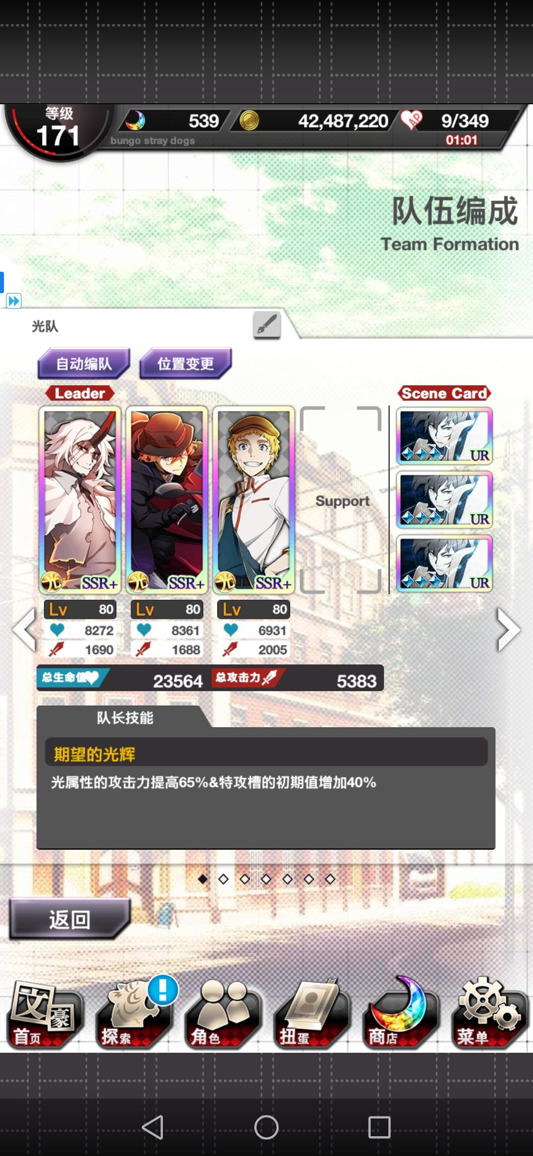 光队同理,需要把中也换成光芥川龙之介(主动技能是全体伤害的),因为我没抽到。