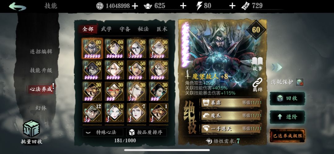这个是我的装备和心法。打桩2亿都上不了 球大佬帮我配下心发和技能链 绝影的。谢谢