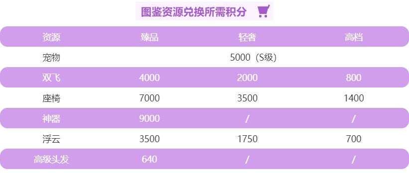 在图鉴中,还有部分服饰、宠物、双飞、座椅、小饰品、神器不参与兑换,舞者们等待活动开启后可进入游戏查看详情哦~