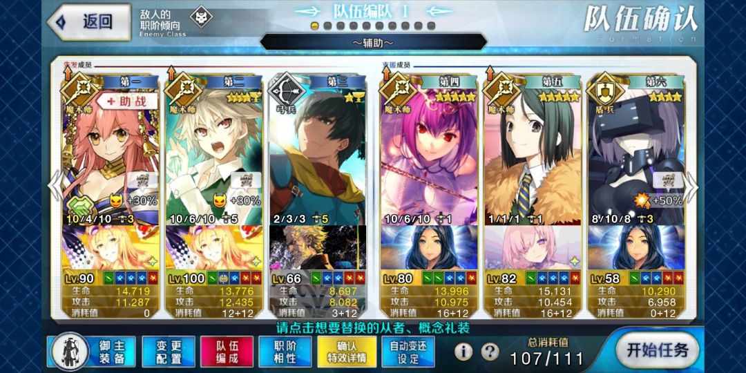 孔明给齐格1,齐格2,CBA放2,3。(我很多技能没满,要放礼装的加攻击补一下伤害)