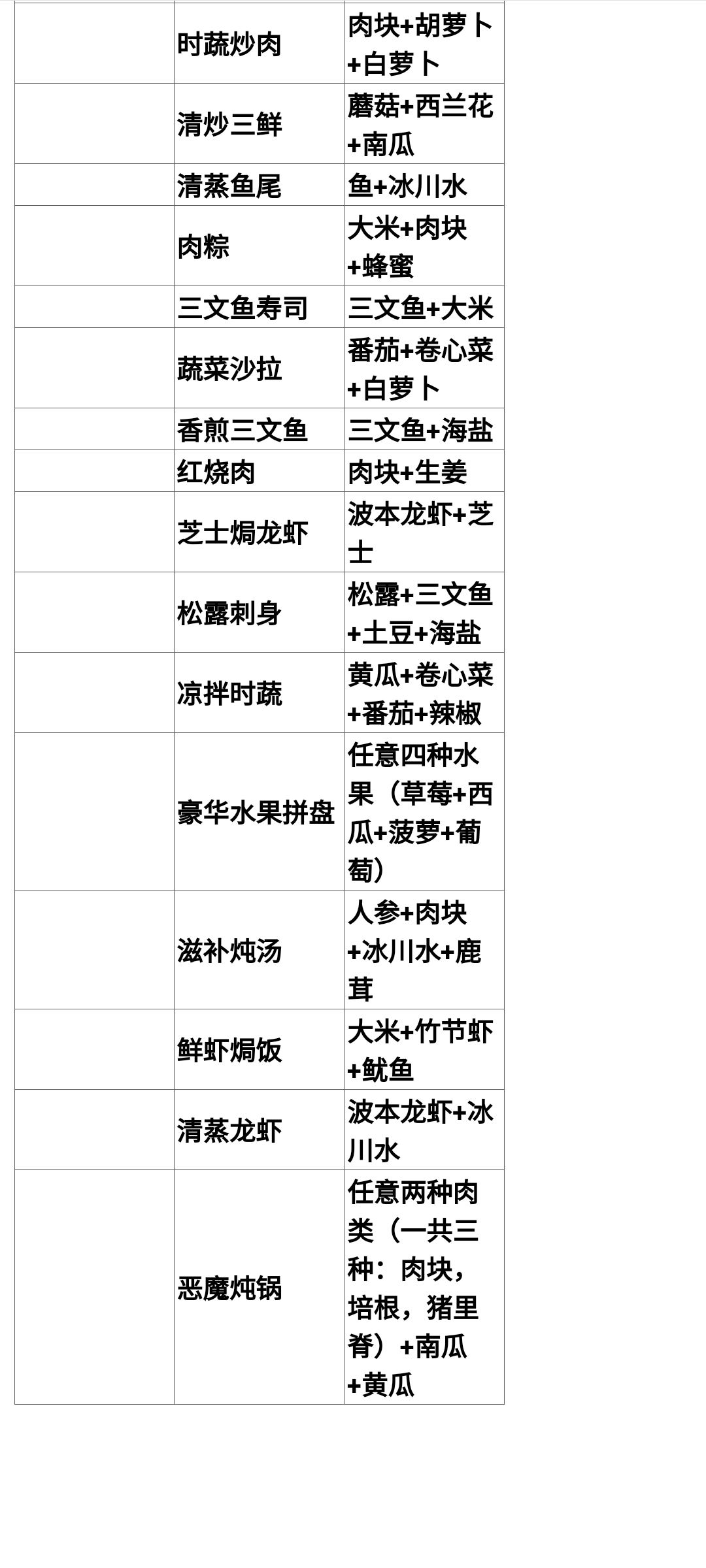 根据当前版本情况所做,本攻略只提供食谱,未讲解各材料获取方法故为简易食谱,部分材料需在海港城才开始有(如黄油,波本龙虾,海盐,葵花籽,培根,猪里脊,人参,鹿茸),很多材料可在各大商人处用金币购买,祝各位玩家都能满食谱,满加成
