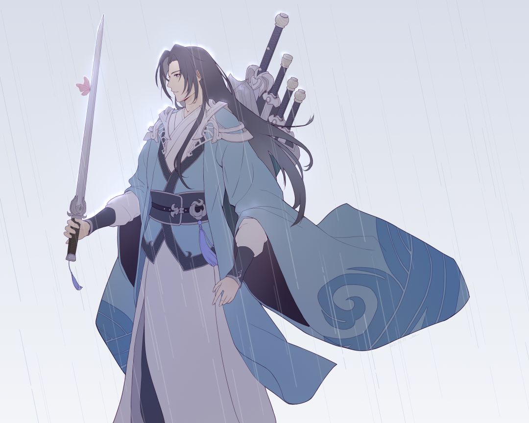 被打湿了翅膀的蝴蝶驻留在剑身上,随着呼吸而微微轻颤的翅膀像是在与碧水剑的弧度共鸣着。