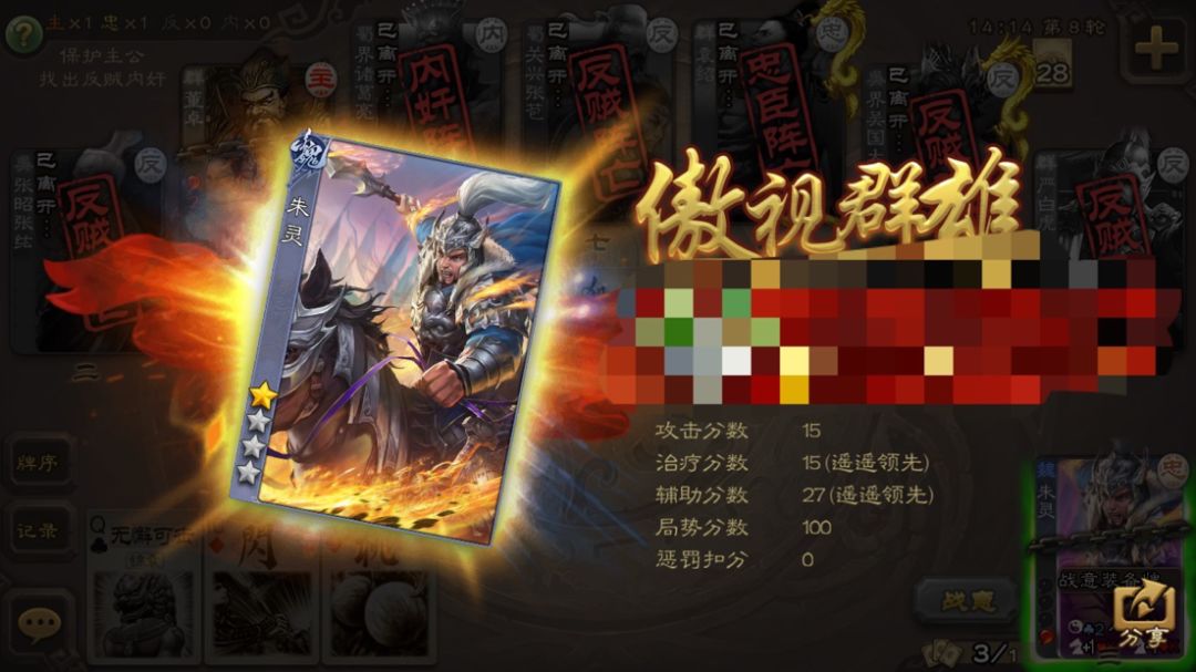 单打能力还行,就是嘲讽有点高,毕竟回合外无任何收益,如果反贼觉得你是突破口,那基本上你是活不到在最终局的,所以单打能力无法发挥。