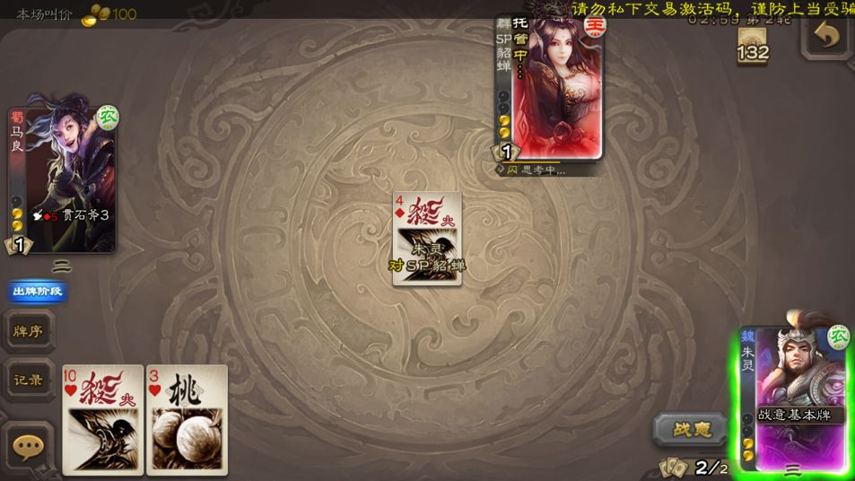 ②锦囊:和界盖子类似,不过差别就是朱灵是锦囊无视无懈,而盖子是红杀无视闪。