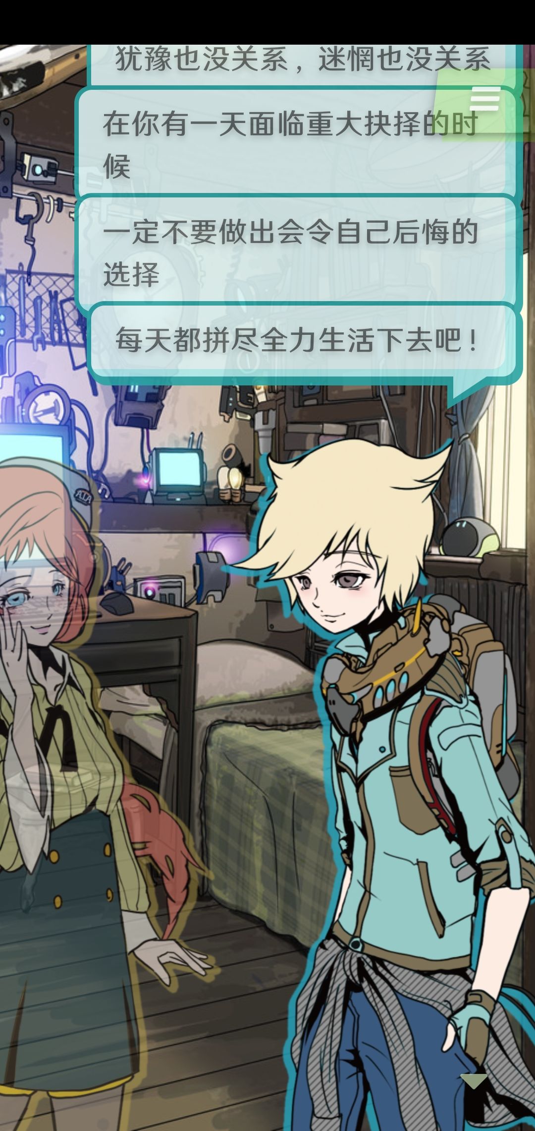 选择设计上更加注重逻辑性,上一部中可能出现的“完全想不到怎么样不会死”的选择没有再出现过,就我个人体验来看,只有你充满“人文关怀”地去游玩,就很难走进BE结局的线路(代价是收集全结局花的时间更长了)。
