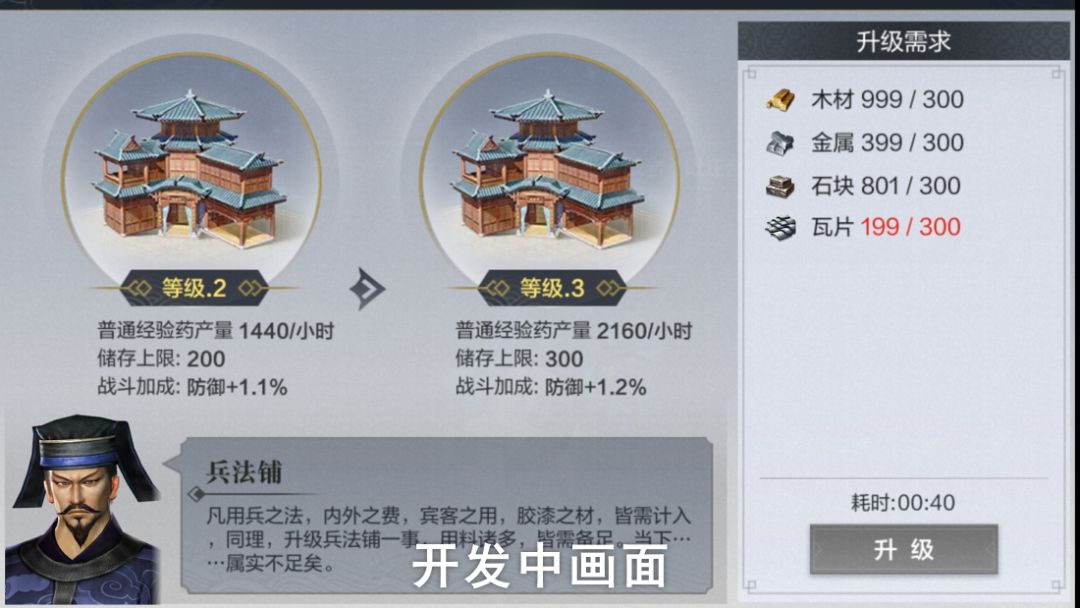 主公们可不要小看这几个建筑,它们除了能直接提升在主公战斗时的属性之外,对于物资生产,也有不小的帮助。例如锻冶屋可以生产铸铁,兵法铺可以生产经验药等,都是战场上必备的物资材料。要是主公底下有充足的人手,还可派遣了武将进行驻扎,从而触发随机事件,获得更多的奖励。