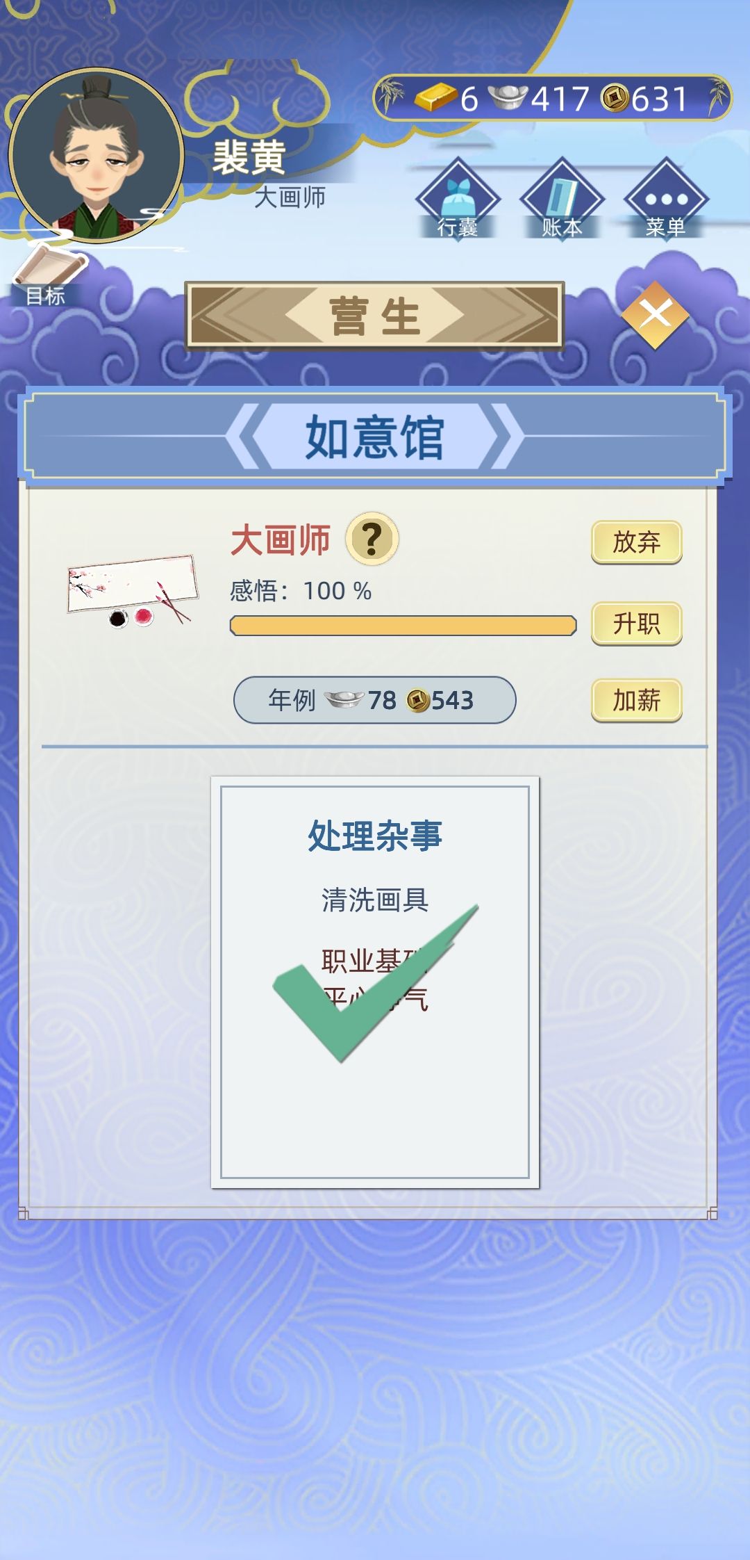 34岁的时候就已经是大画师,感悟也是100%,可是一直说我感悟不够,不给我升职