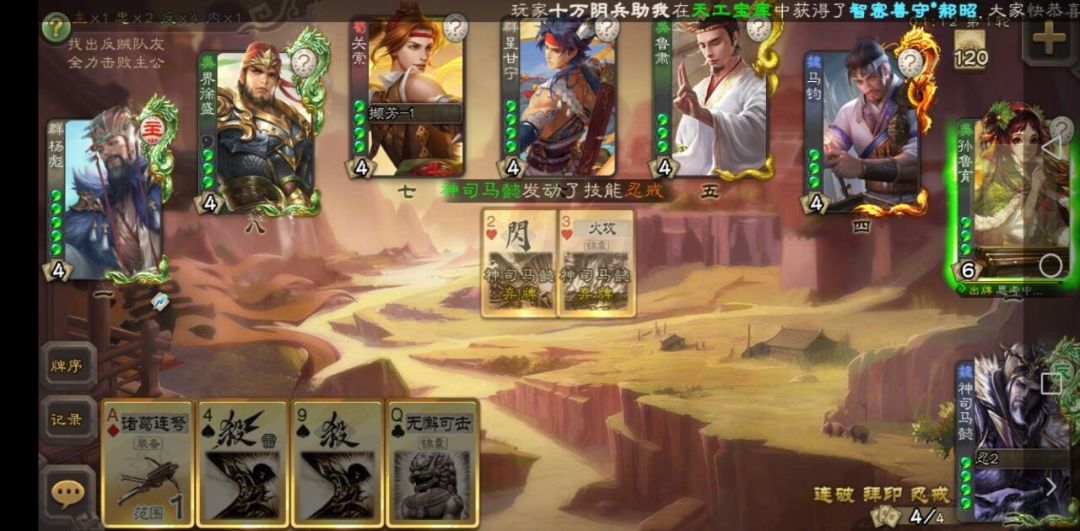 ③一般情况下,每轮都可以依靠弃牌来获得2个“忍戒”,而觉醒只需要3轮。但是你觉得有那么容易觉醒?当然没有,因为牌堆还有5张顺手和6张过拆呢再加上还有一些武将的拆牌技能,更加重了觉醒的难度。