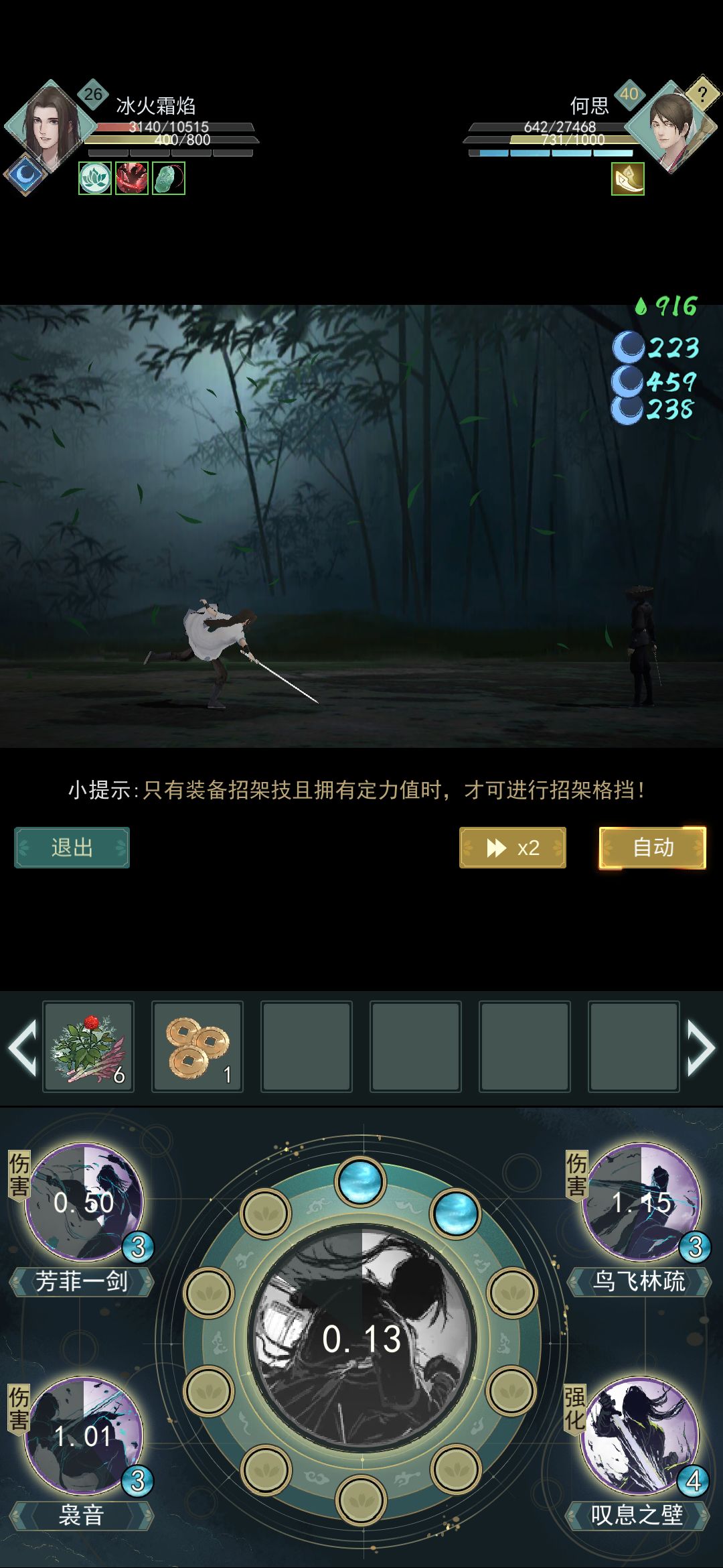 袅音:概率额外攻击一次,进阶效果没鸟飞林疏强,cd大概八息,平均四息剑意消耗≈1.5