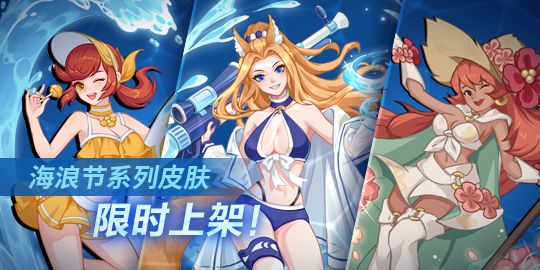 海浪节系列皮肤限时上架商店!包含护士长皮肤「果味晴夏」、狙击手皮肤「海岸猎手」和唤星师皮肤「海岛风情」。