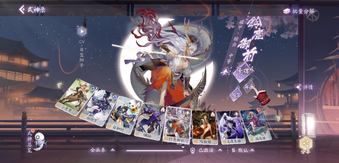 相当万金油的角色,因为被动就是很直接的鼓舞,所以塞任何卡组都能加强场面交换,式神本身没有解后,所以队友一定要有解后能力,后期拥有棘手的高攻特殊效果形态和不错的斩杀能力,是可以做核的一个辅助。
