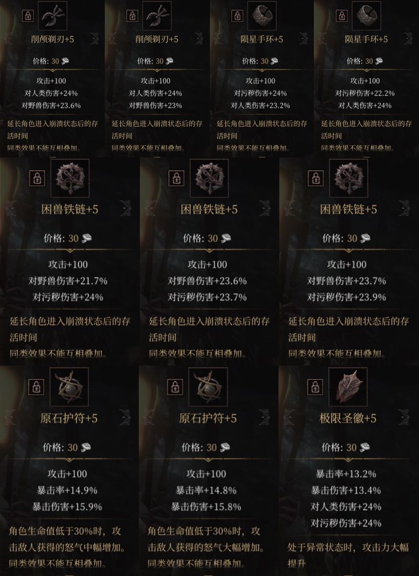 作为一个把黑雾当家的人,玩这个游戏800个小时基本都在刷黑雾,周目才打了13周目,黑穴对于我来说毫无难度也不枯燥,比较喜欢这个模式吧。说一下黑雾的一些特点,地图属于本体地图拼接在一起,大概有10个左右的地图具体没数过,进入每层黑雾地图都是随机的,分别有3个出入口,进入黑雾随机出现一个出入口,然后可以从另外两个出入口进去继续刷执念槽,里边的怪是随机刷新3种类型,每种小怪出现的位置都是固定的,宝箱也是随机刷新出现,位置固定,但是地点不固定,还有加增益效果的石像和回理智的池子也是一样。最重要的就是装备掉落,以黑穴为主,boss掉落的装备类型随机数值也随机、大幅小幅也随即、+4、+5都随机出现,但是装备的数值是固定的,掉+4装备重刷也会掉+5。例如篡夺者掉落原始护符,数值为100功,暴击15,暴伤15,大幅提高,大退重刷boss后掉落圣辉,对应的就是暴击13.3,暴伤13.8,人类和污秽增伤在23%左右吧,但不一定是大幅增加,也不一定是+5,不过一直刷肯定能刷出+5大幅,黑精开箱子打通黑穴再开保底+4,杀死任意boss,箱子装备顺序刷新,通关任意难度数值刷新。这里说一个攻略但不一定准确,假如你有9999蘑菇,开了7000的蘑菇,出个极品想要留下,但是你又不想用这么多蘑菇,就去刷黑穴打到最后一层也就是杀死第六层的boss进入第七层后吹哨回祭坛,你在花1000左右的蘑菇就能刷出这个极品。杀死第五层boss吹哨子回来就需要开2000蘑菇,意思就是每杀死一层的boss,开箱物品顺序就往移动4次开箱位置,杀死黑穴第七层boss,箱子物品就变了,不用考虑最后的掘墓人。最后刷完要记得摸祭坛,上传云存档。