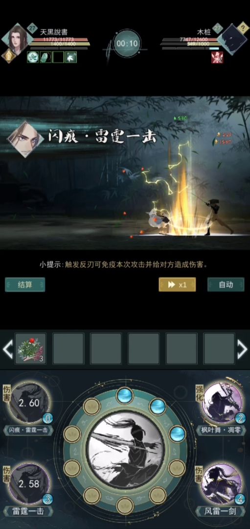 顺序是:风雷起手+平A,然后过了3/4进度条,枫叶,接雷霆,闪痕,枫叶舞二段。