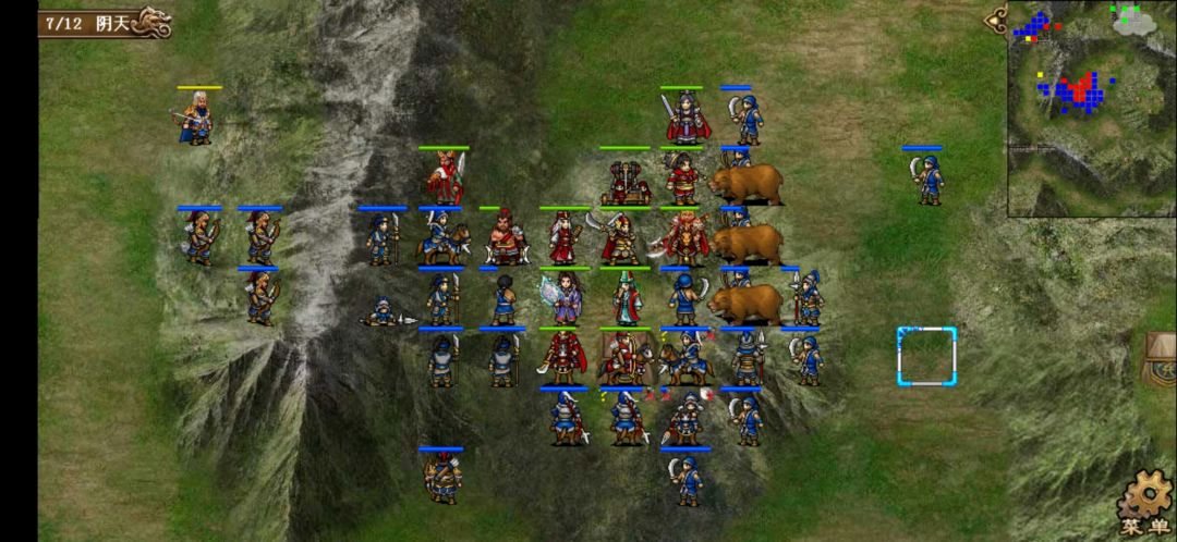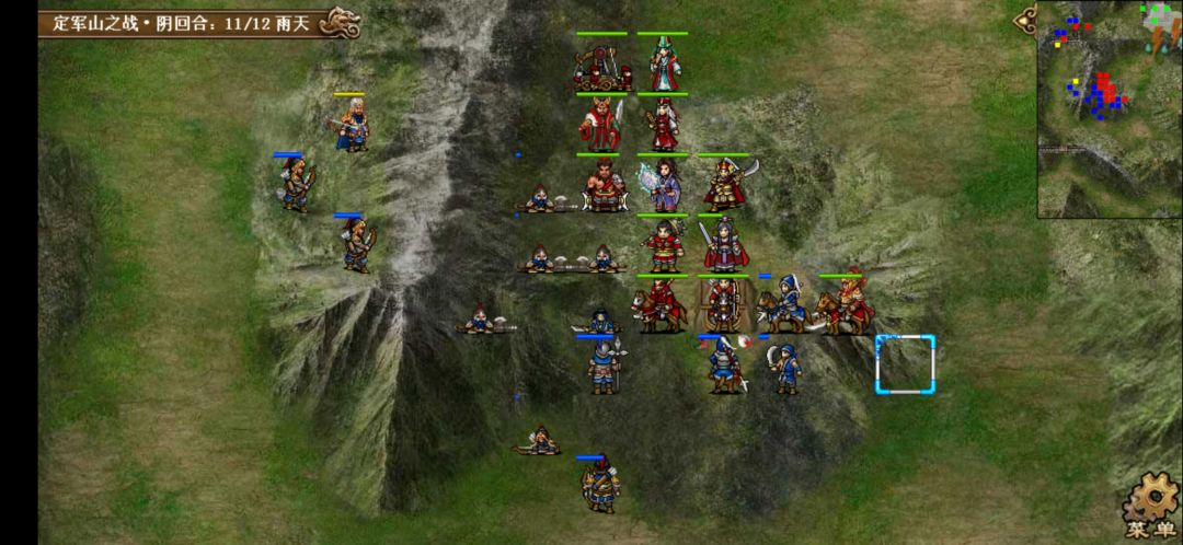 思路:张郃开局直接支援曹洪,其余人左侧高地集结,典韦上山嘲讽左侧敌军,小夏和徐晃挡住下方来军,然后毒雾风龙挑拨各种扔就是了……