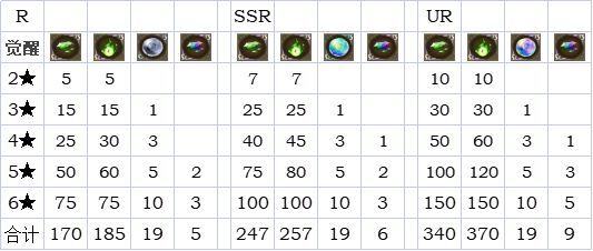 2. 角色觉醒所需材料,SR的没找到,欢迎补充,哈哈: