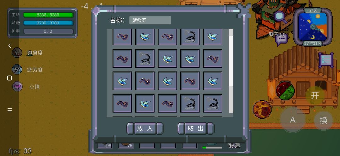 仓库可以卡材料,武器,强化石,建筑,食物,消耗品,所有能放进仓库里的,我点数基本都加星力了,异能值是吃技能书吃上来的,还卡了一堆东西,自己看吧。武器是卡了一堆武器,然后拿卡的八级强化石硬堆的,八级强化石八升九只有0.5成功率,四十件没顶上去。
