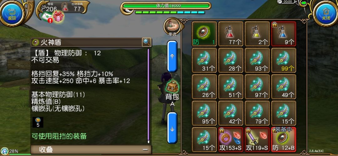 盾牌用的是王掉火神盾,作为最好被欺负的dd合成,入坑升级时随手掉落的盾牌就可以拿过来用,12的暴击还附带了250攻速,可以说炒鸡棒。