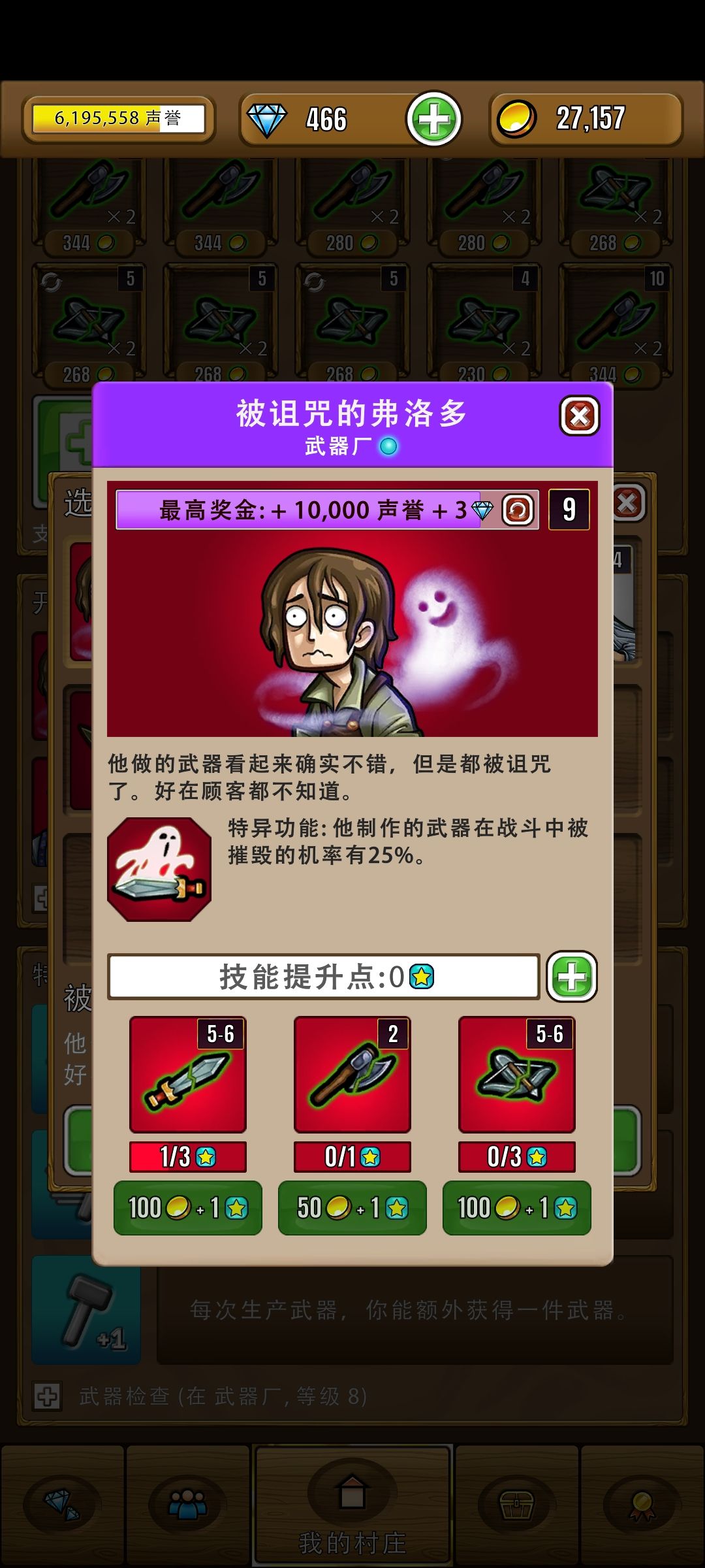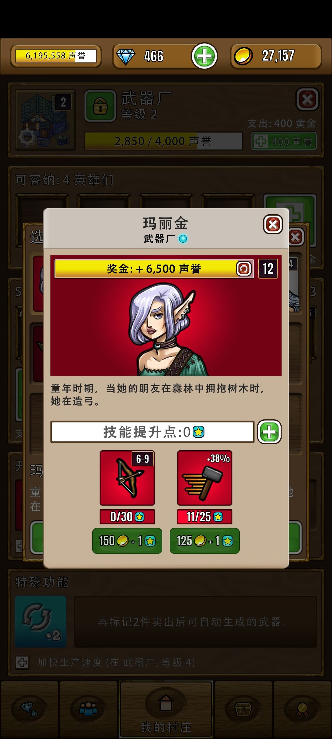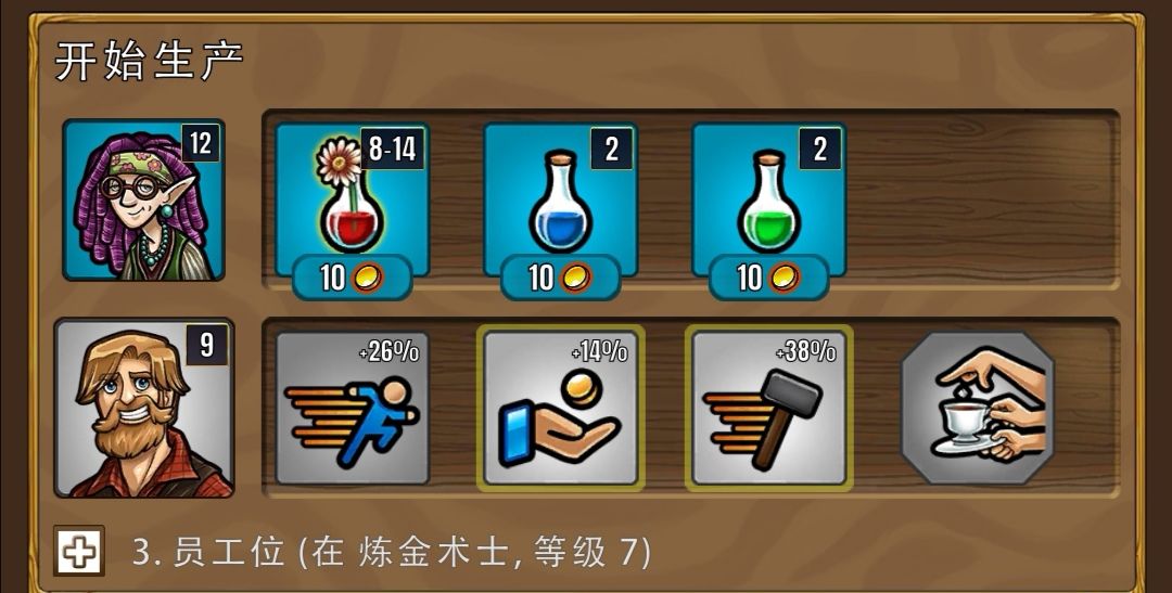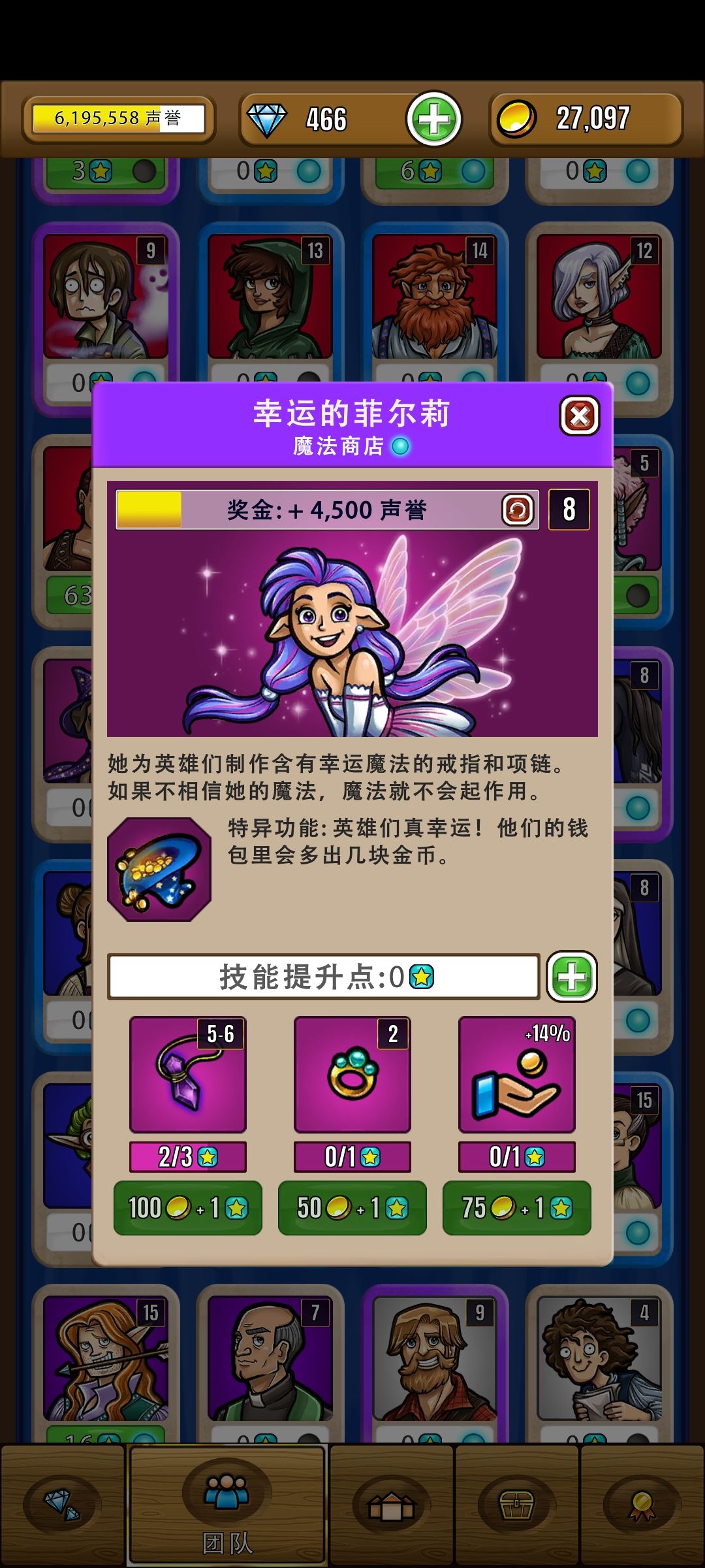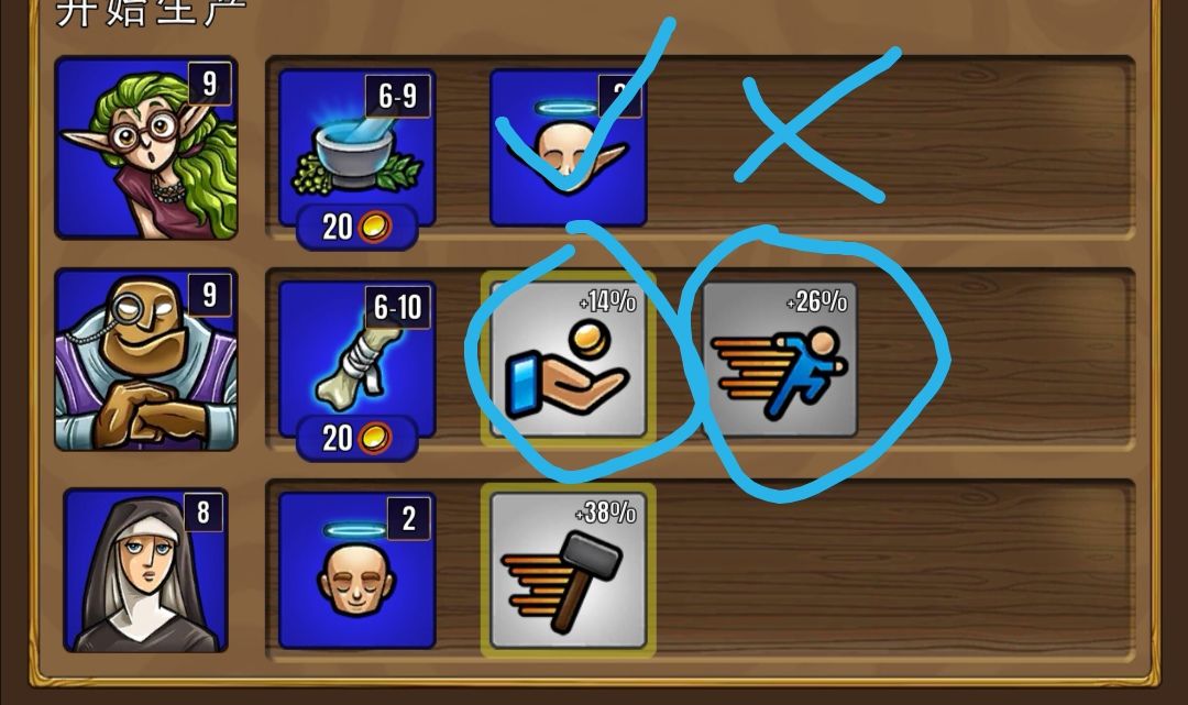 像有两三种物品的队员,不要平均升,只升单个物品,因为后面当你队员多起来之后,很多天赋是一样的,每个房子可以放三个队员,如果你都平均升的话物品等级就很低,卖出去价钱也会少,第二种种队员既可以卖物品又有天赋的,这种队员不要去升级他的物品等级,全升天赋,这样可以辅助其他队员,还有一种是不卖物品全是天赋的,有三类,售价奖励,生产速度和购买行动加快,我个人建议可以主升生产速度,没有的话可以主升售价奖励,购买行动加快其实可以把容纳英雄的格子子多买点。后期你队员很多了,不要队员有技能提升点就升级,这样你金币会花很多,主要提升那些你在用的队员。队员品质也很重要,当你抽到那种自带特意功能的,就可以把普通的队员换掉。换队员的时候要注意,如果你正在用这个队员造物品,物品还没造完,就换队员的话,你在造过程中的物品就白花钱了。队员技能点可以重置,不会的看下图