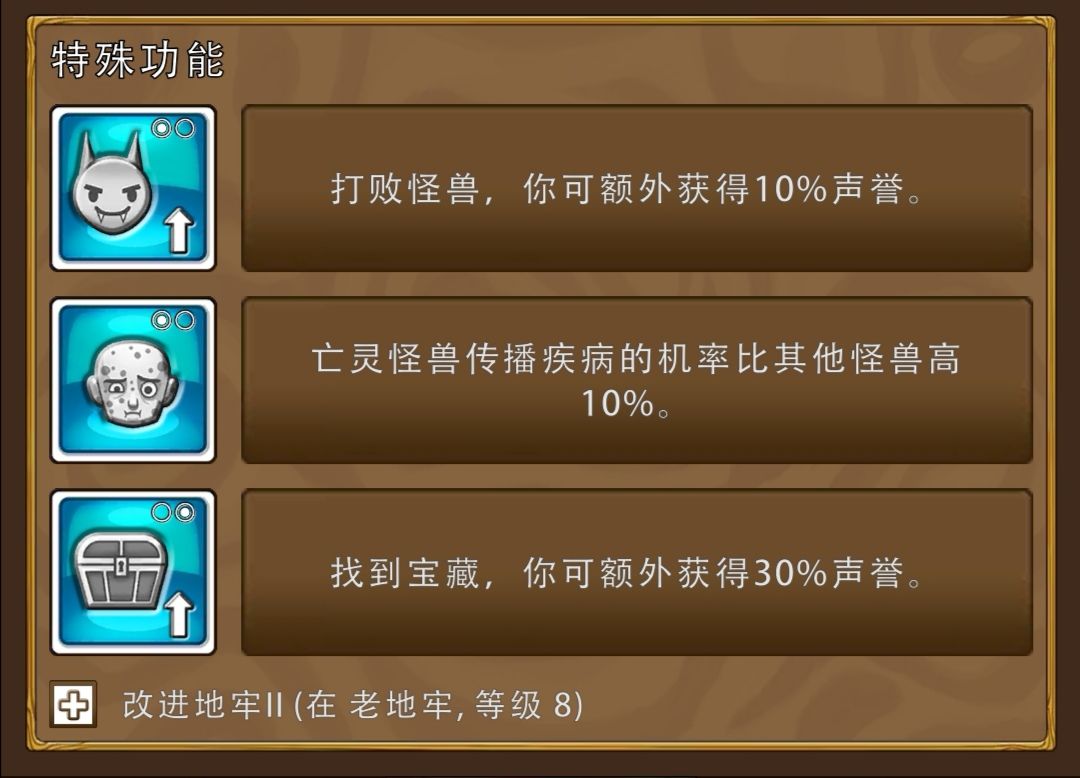 在同等级的情况下,全选择获取箱子的声誉多,我建议如果怪物等级不超过金箱子三级,就选获取宝藏,或者你墓地里选的是其他效果,不加声誉的话,建议还是选择获取宝藏,这次就以老地牢为例,下次其他的我在补上,或者有兴趣的可以自己去算一算。所有地牢中黑暗神殿所加成的效果最好。当你有了boss,我建议不要每天放一只,其实效果不怎么样,可以等到有任务需要的时候放,建议放在效果加成最好的地牢里。