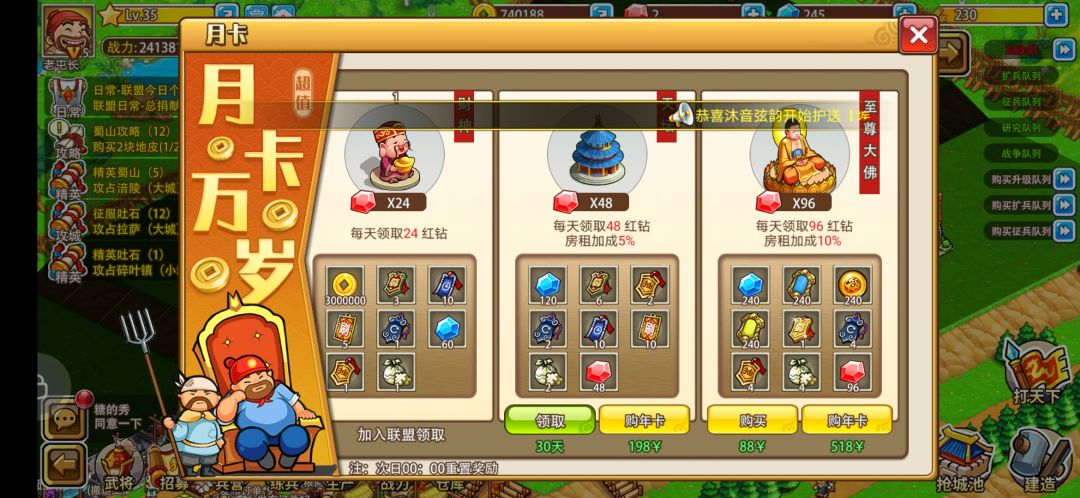 从昨天开服到现在肝到35级,10个武将 去掉首充 6个紫色,可能是运气好第一发十连抽出了紫色,其他杂七杂八的也买了一些。钱充的不算多可能连大佬零头都不够。但是有一点要提一下,昨天到现在少说500抽有了,但是这个概率感人,可以说抽奖一点点获得感都没有,金色武将对普通玩家来说就是个看看就行,反正也用不到得不到的东西,也不能通过碎片合成,一句话要么氪金要么看脸,但是这个概率真的感人。我是月卡党可能会有心情攒一攒粉钻什么的,攒着去抽高级十连抽,但是我真的攒齐了,我想那时候金色武将应该已经过版本了,抛开他们一直在说的抄袭不说,这游戏下线就不涨金币了,这怎么玩?你看看战役里面哪一个不是要靠占领,哪一个不是要和人打,普通人怎么打?占领了给个几百万还不够升级一两个技能?总的来说问题很大,如果不注意,最多几个月就会被更好的游戏替代,留不住人,希望策划可以自己用gm试试看多少次可以抽到金,概率游戏每个厂商都会玩,但是别人有获得感可以继续骗玩家充钱。你们这里出个紫色都是谢天谢地,何来金色一说,良药苦口利于病,忠言逆耳利于行。好话到此为止,如果没有什么悔改,兄弟告辞,就这样吧再见👋🏻