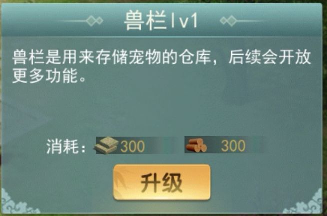 类比码头,兽栏功能也分为1级,10级,15级,20级;其中1级兽栏就对应描述中“存储宠物”的功能,而其他3个等级增加新的功能。