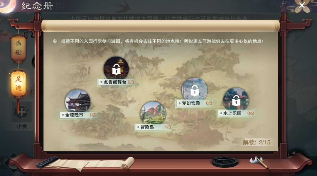 在游园开始前,所有少侠都会收到一张地图,上面标注了本次游乐园开放的几个玩耍项目,而少侠们要做的就是通过在游乐园中逐个解锁这些足迹,即可在地图上盖章打卡,集齐打卡有奖励哦!