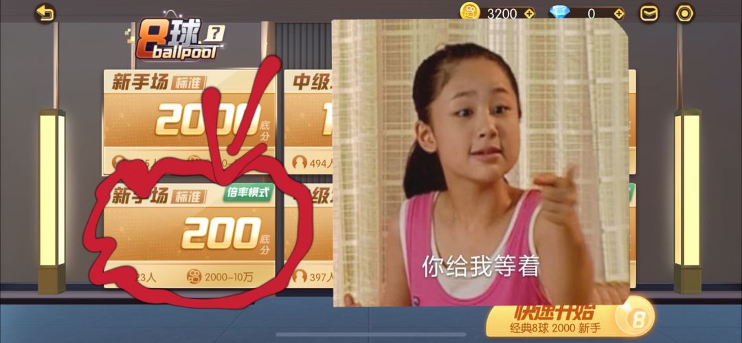 我打开了电竞台球,先去新人场炸鱼,但没想到反被鱼炸😭,输了把大的