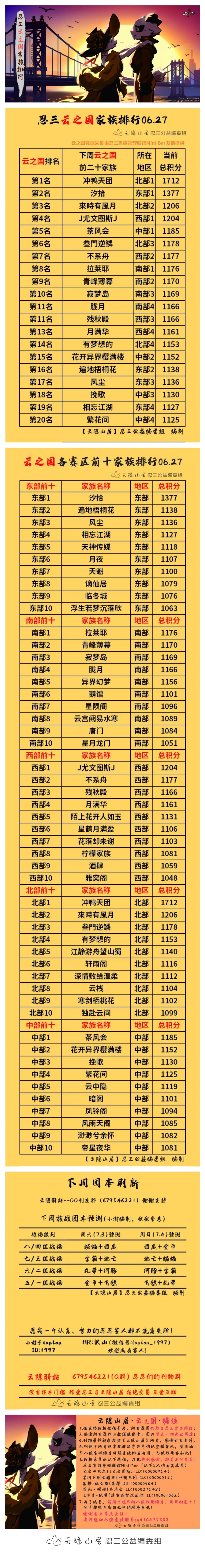 【云隐山居·云之国·周刊】忍三家族积分排行榜(NO.0627周日版)