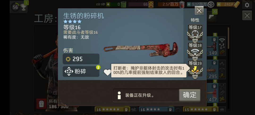 等我有空升级武器,测试幸运能不能把打断和震荡技能的触发几率提高。