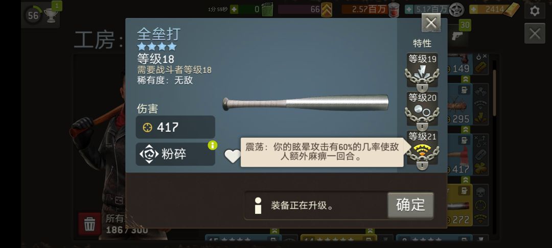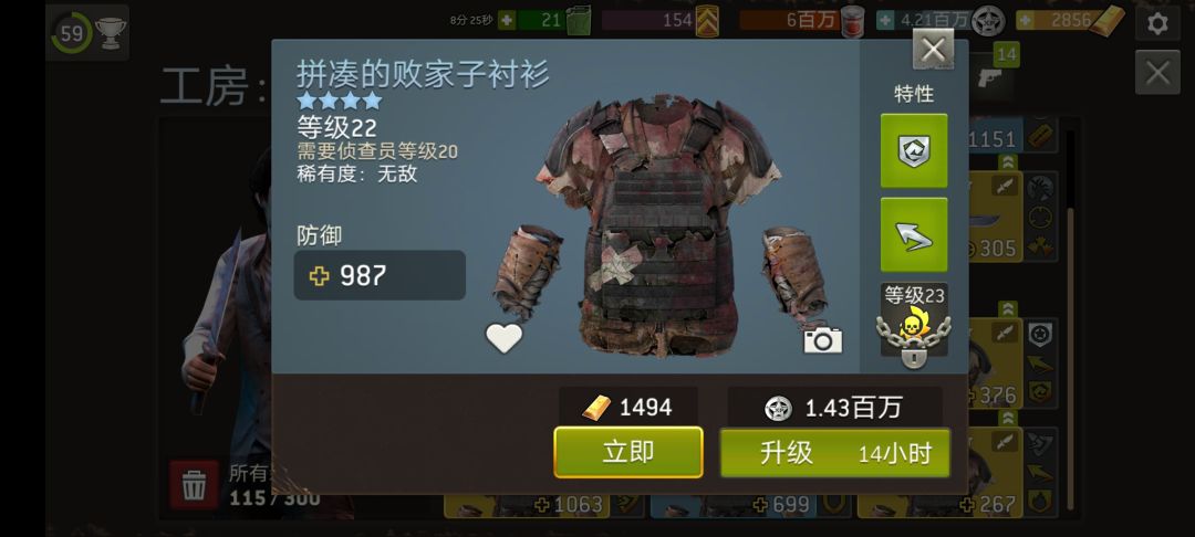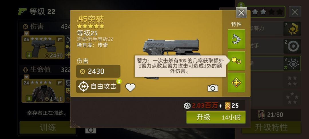 2.打困难的清扫模式,丧尸是高一自己2级的,获得的武器也高自己1-3级的。。为后面做储备。。这样才是良性循环!!!