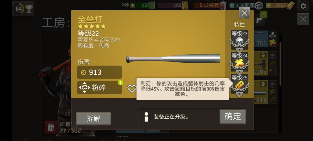 致残这个技能呢,不会因为躯体射击而被丧尸抵抗,可以被幸运加成。我下图这把枪致残没有无触发的情况出现过,虽然加成幸运几率只有95%。。这武器少了射程,打工会战的自由人不太给力,但是打挑战的丧尸风筝效果非常优秀。。许多防弹丧尸啊,免晕丧尸啊,都能用致残控制并且风筝玩他。。