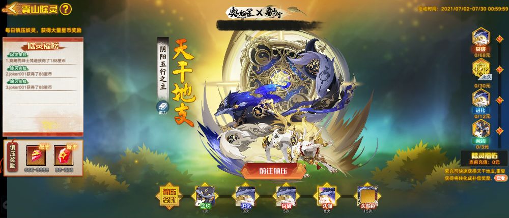 ②云涌江海:7月2号开前六个,有普通、buff模式,有排名,类似神界守护者