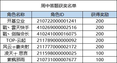 恭喜以下玩家获得奖励,获奖名单如下