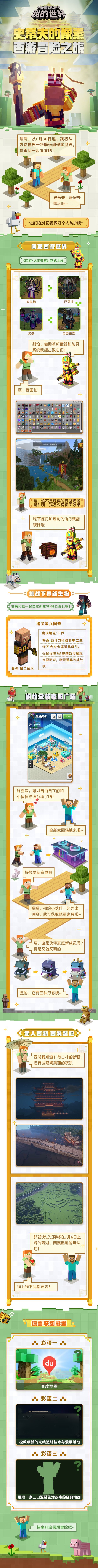 这个暑期,来《我的世界》拿起方块开启你的夏日冒险,勇闯西游世界,打卡现实美景吧!有哪些挑战在等着各位冒险家,又有多少惊喜即将与大家见面呢?快来戳开史莱姆带来的长图,查看详细更新内容吧!ヾ(*´▽‘*)ノ