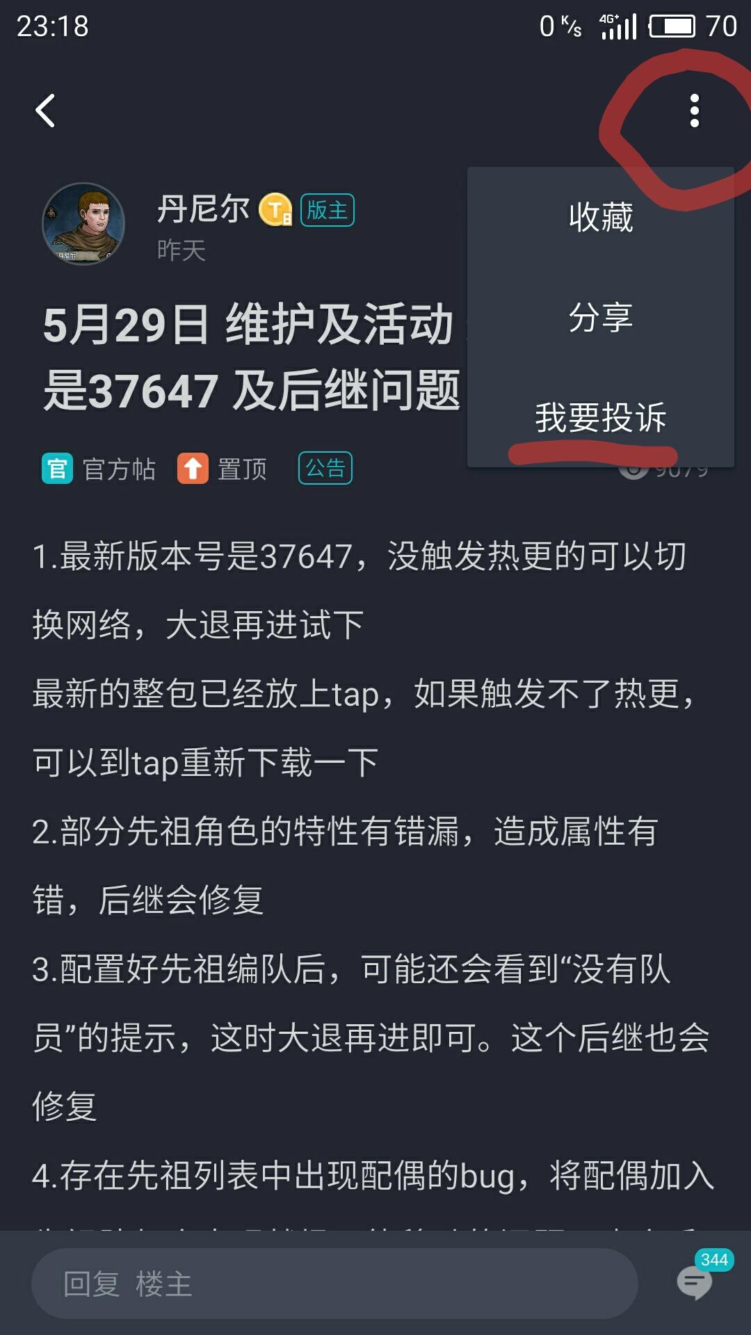 第二步,点击右上角,点击投诉。