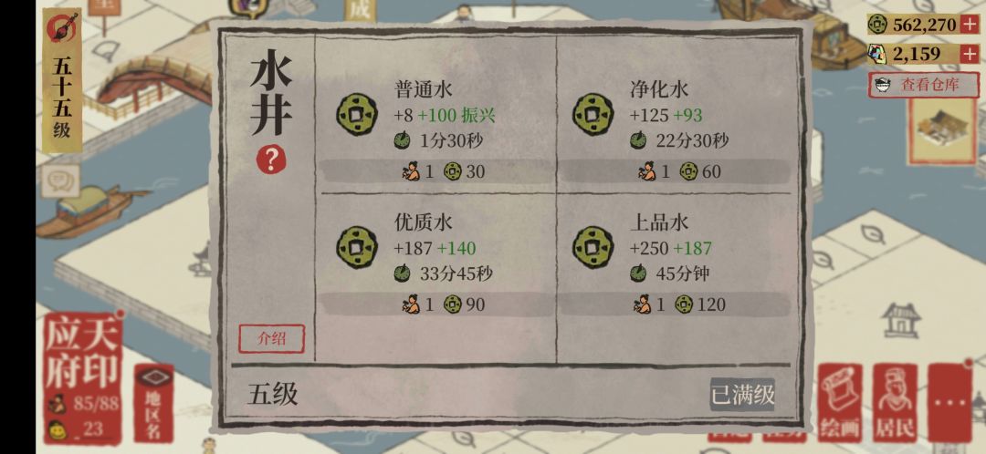 也是我自己刷铜板的方法。不想太肝的知府们,可以不升5级。杭州画室是性价比最高的刷钱建筑了,我在杭州摆了23个,收益相当可观。