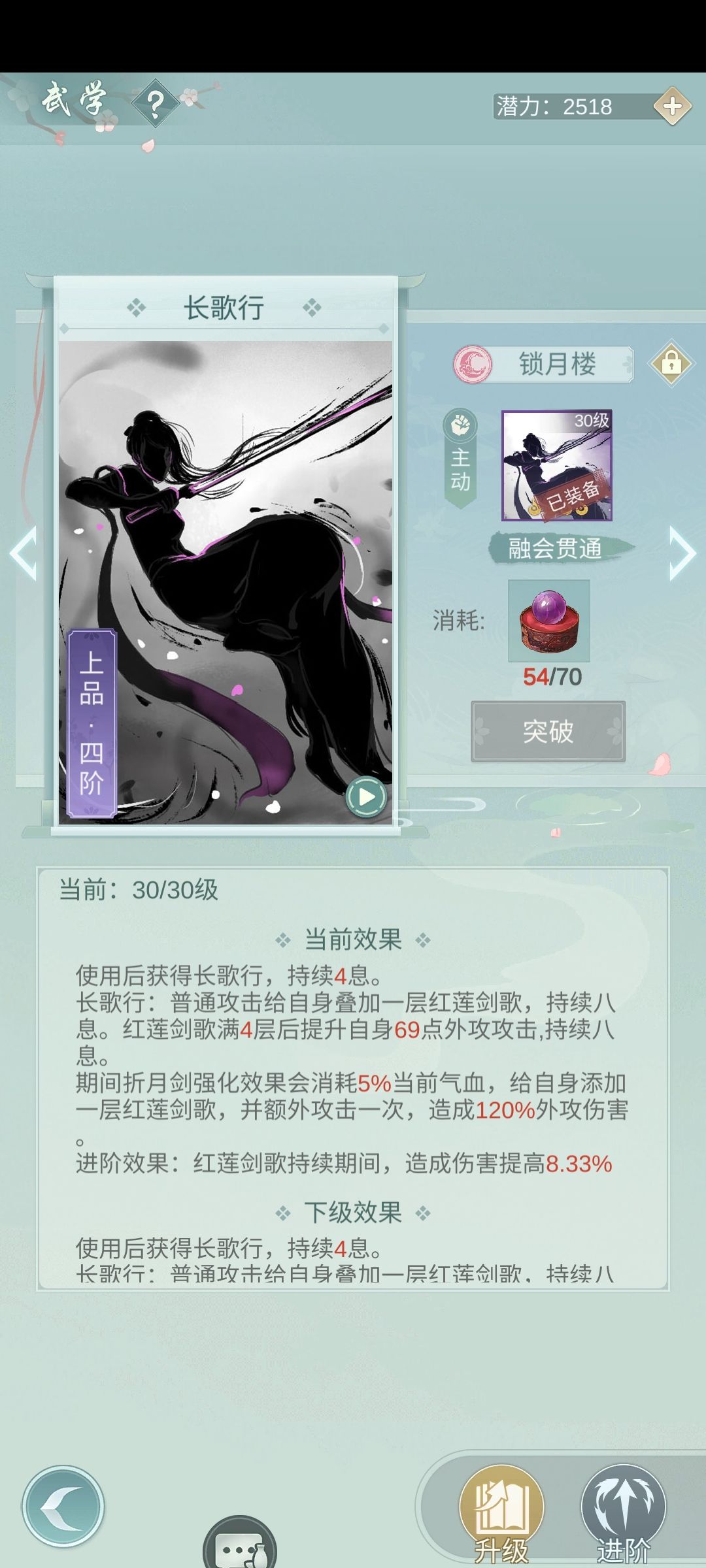 技能优先进阶:狗粮不够先升级长歌行折月剑枫叶舞