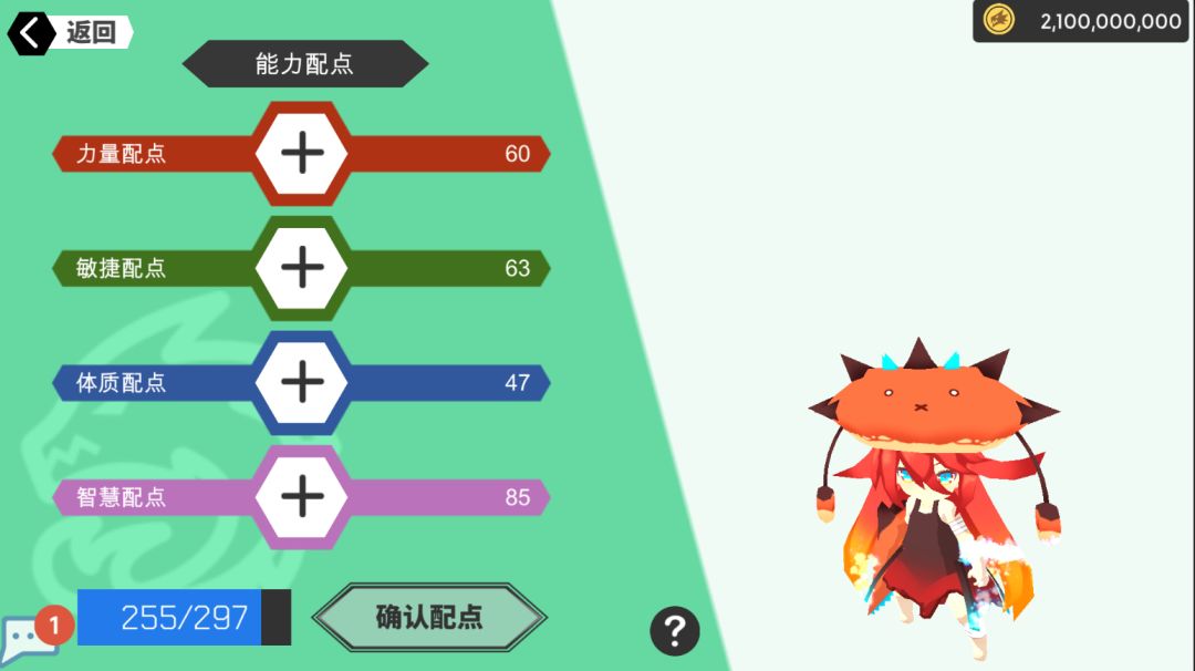 点的方式改良,不是一次一次点,是配点按加号,完全点完后点击确认配点,