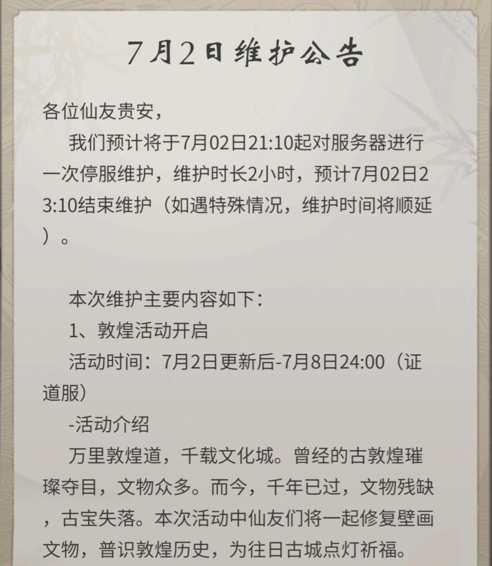 7月2日晚上21:10体验服更新公告 - 一念逍遥综合讨论 | TapTap 一念逍遥社区