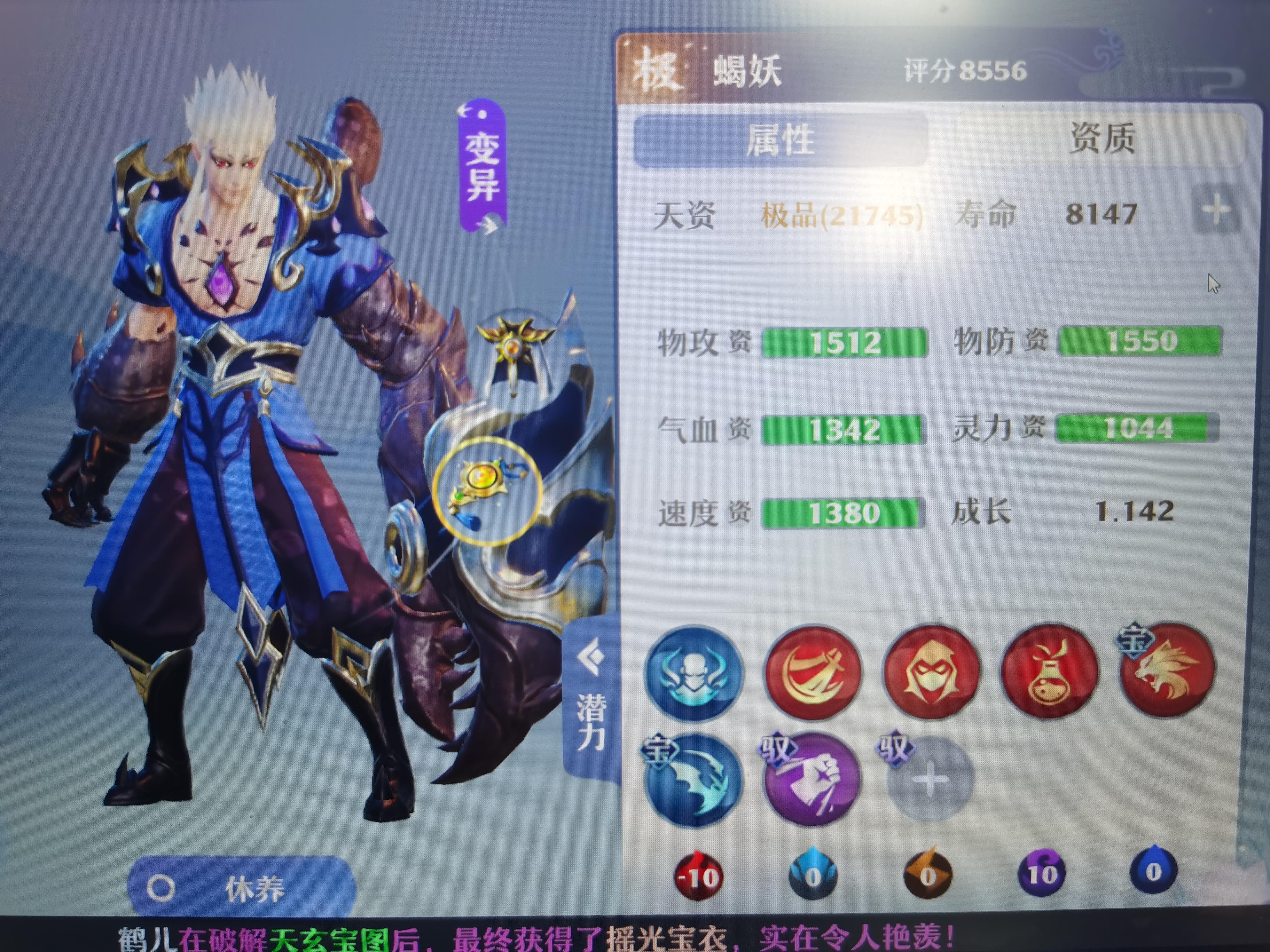 原来是打算55弄只孔雀玩玩的,今天突然想起来有个链子挺适合毒系的,就随便洗了一只蝎妖,用了差不多100洗髓丹洗出三技能高资质自带高级连击和高级毒素,抱着试试心态也算可以了,花了3000元宝打书