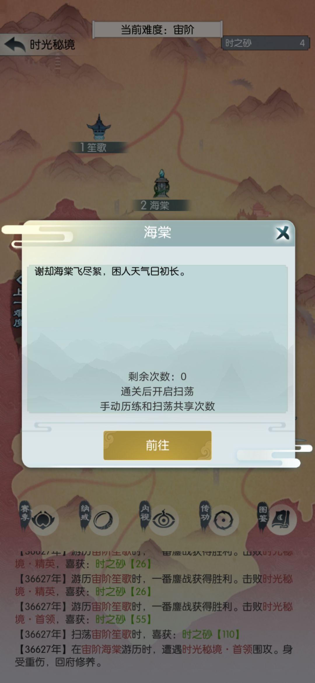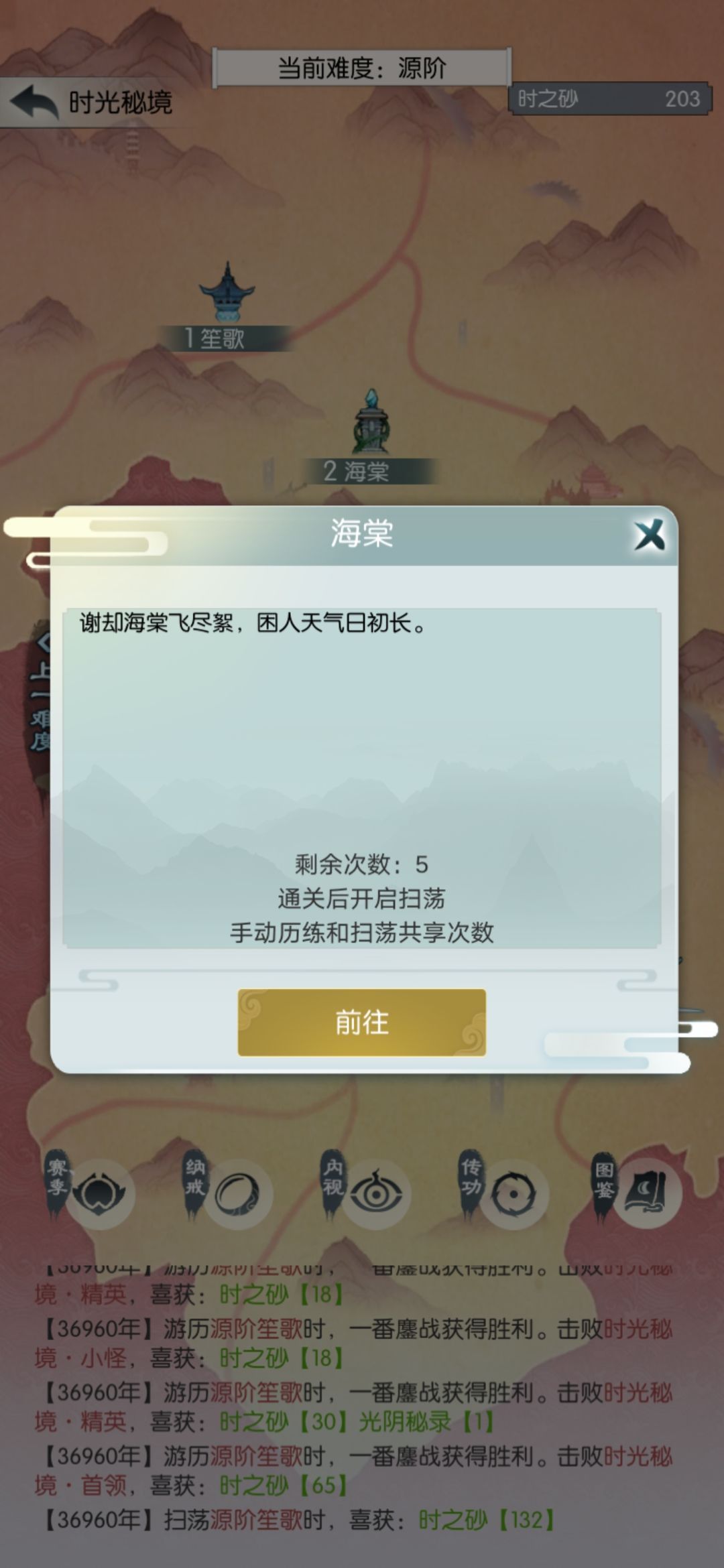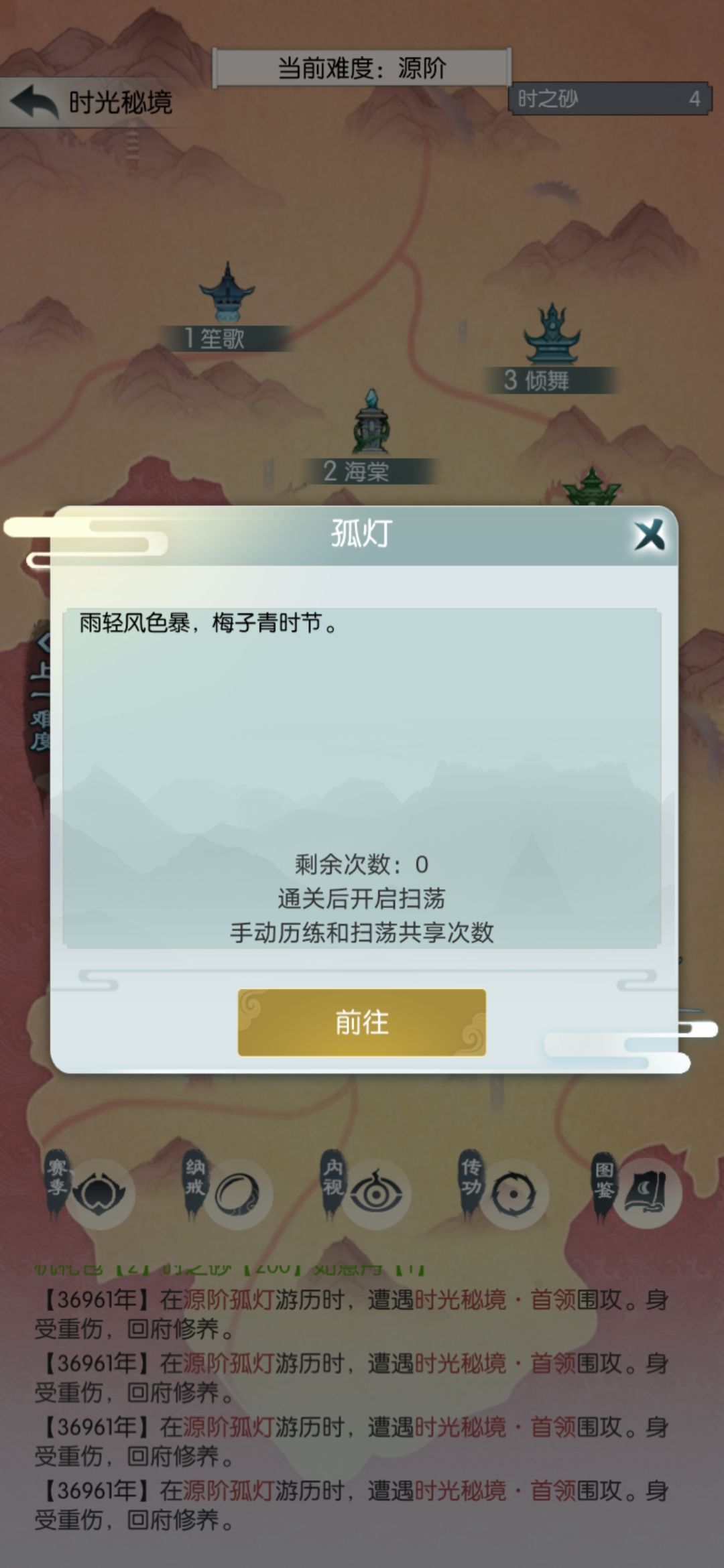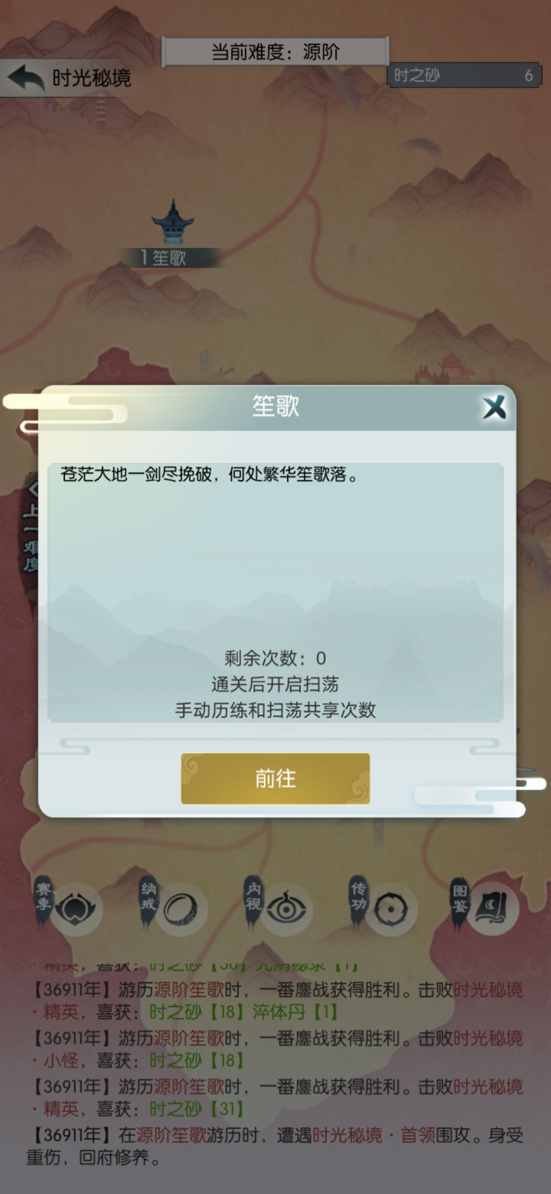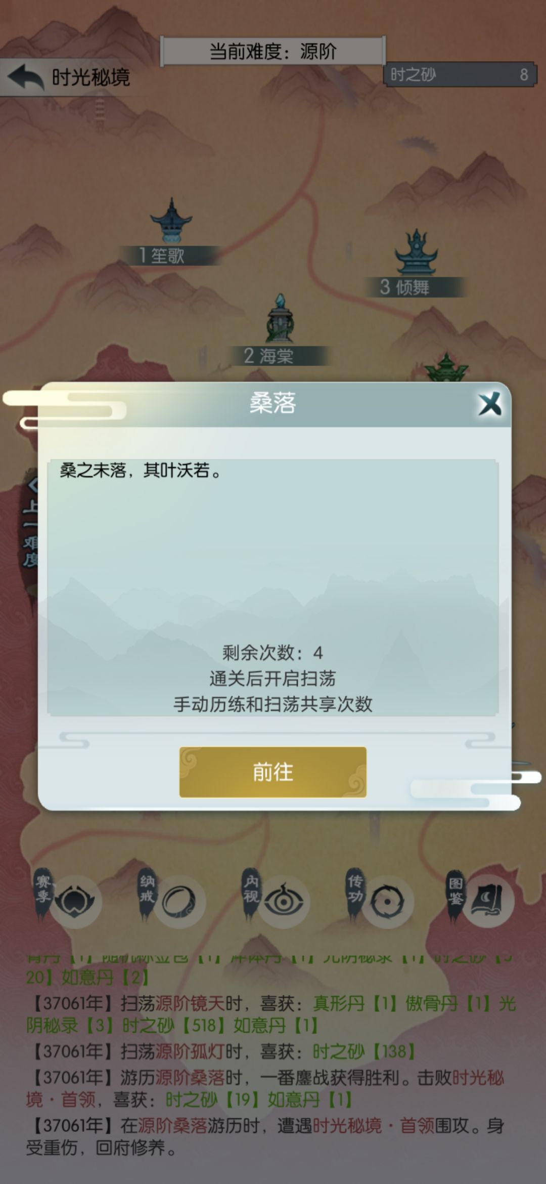 今天也是扫荡五次,买五个抗性丹。在源桑落翻车,不信邪继续打,直到没次数。