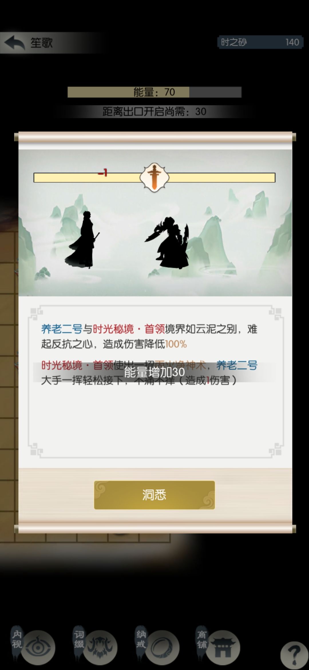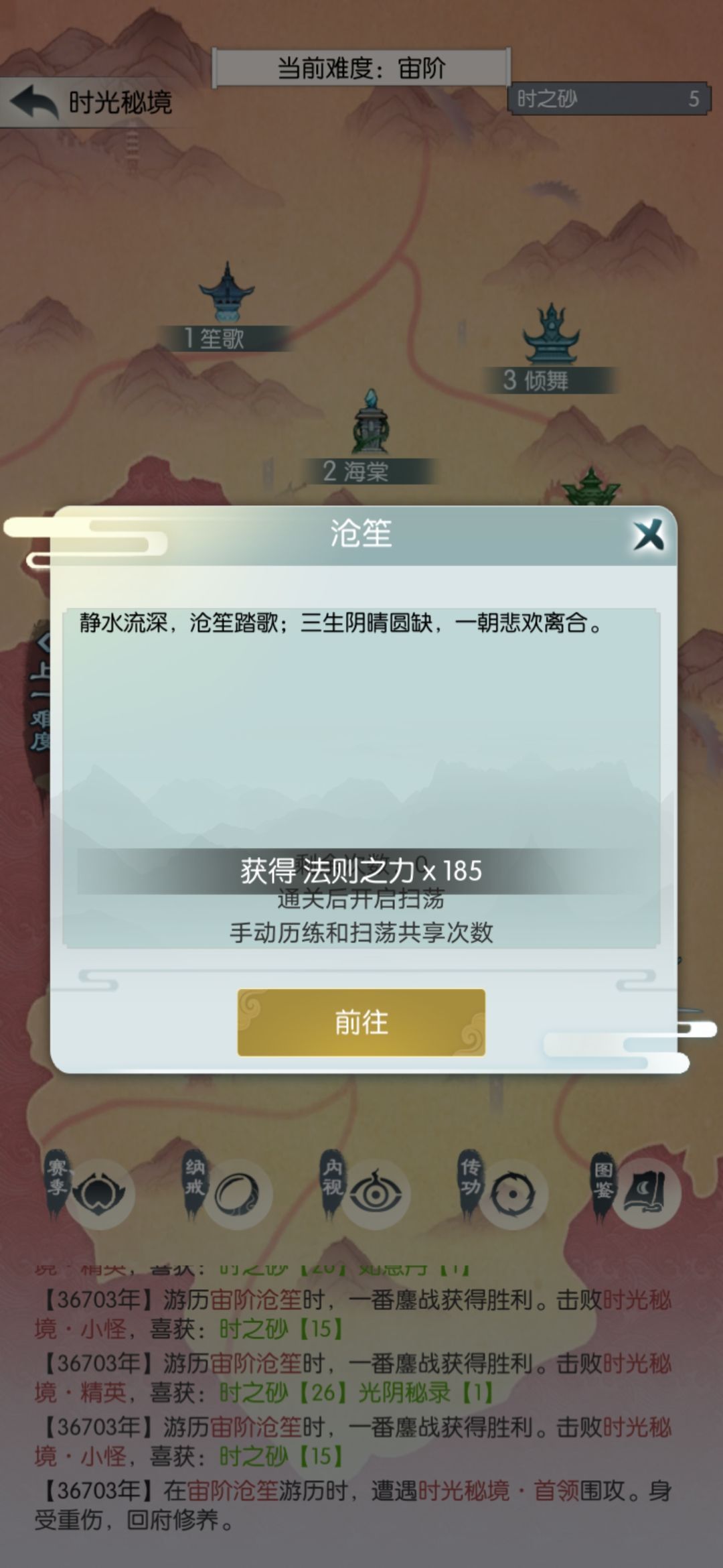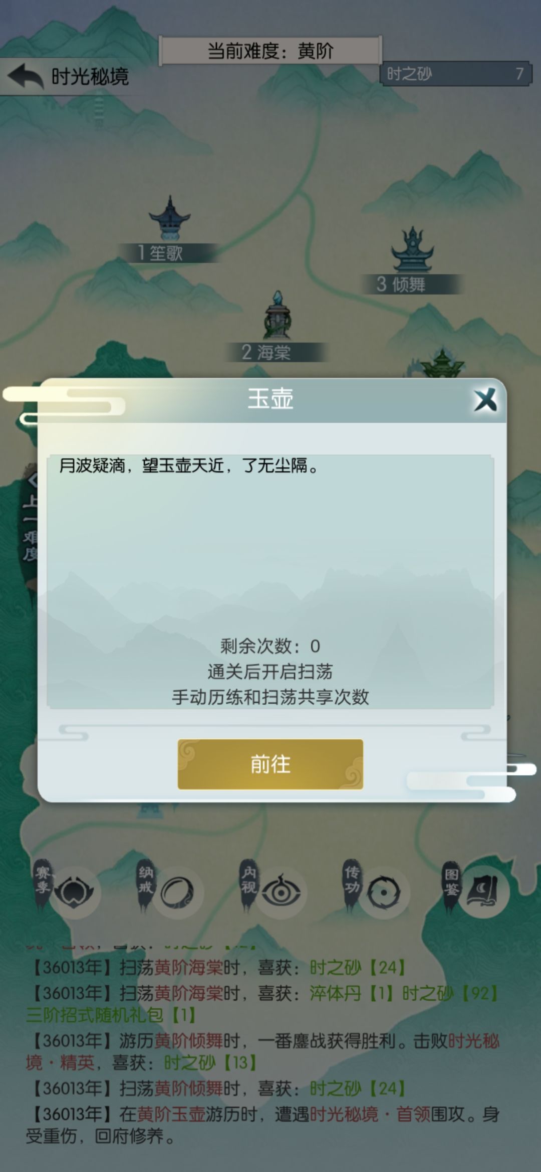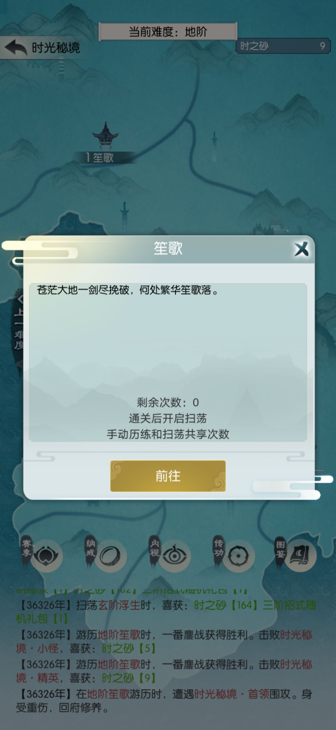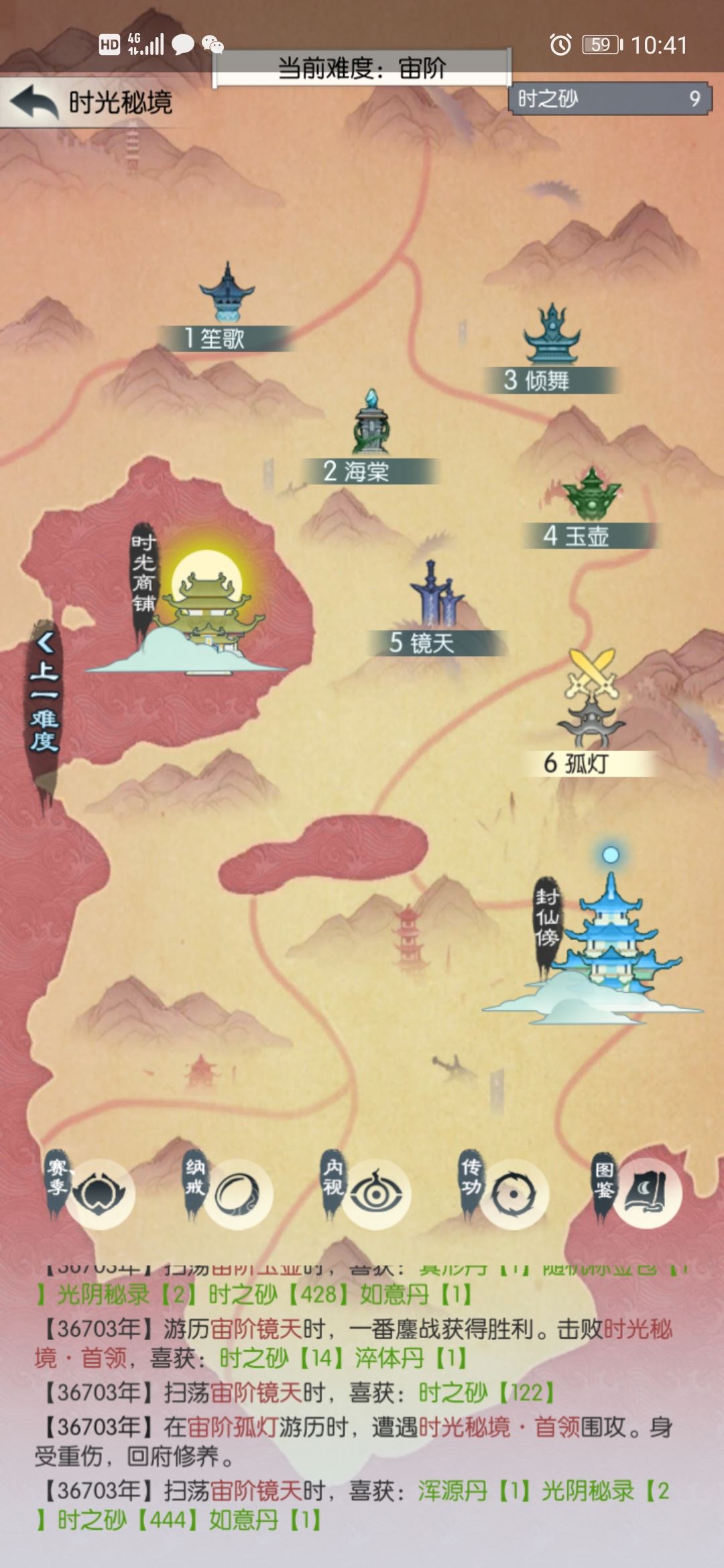 玄笙歌差点儿打过,没次数了。这个结果我有点不满意,今天搞砸了;可能应该第三天再买光阴密录,不过还在接受范围吧。