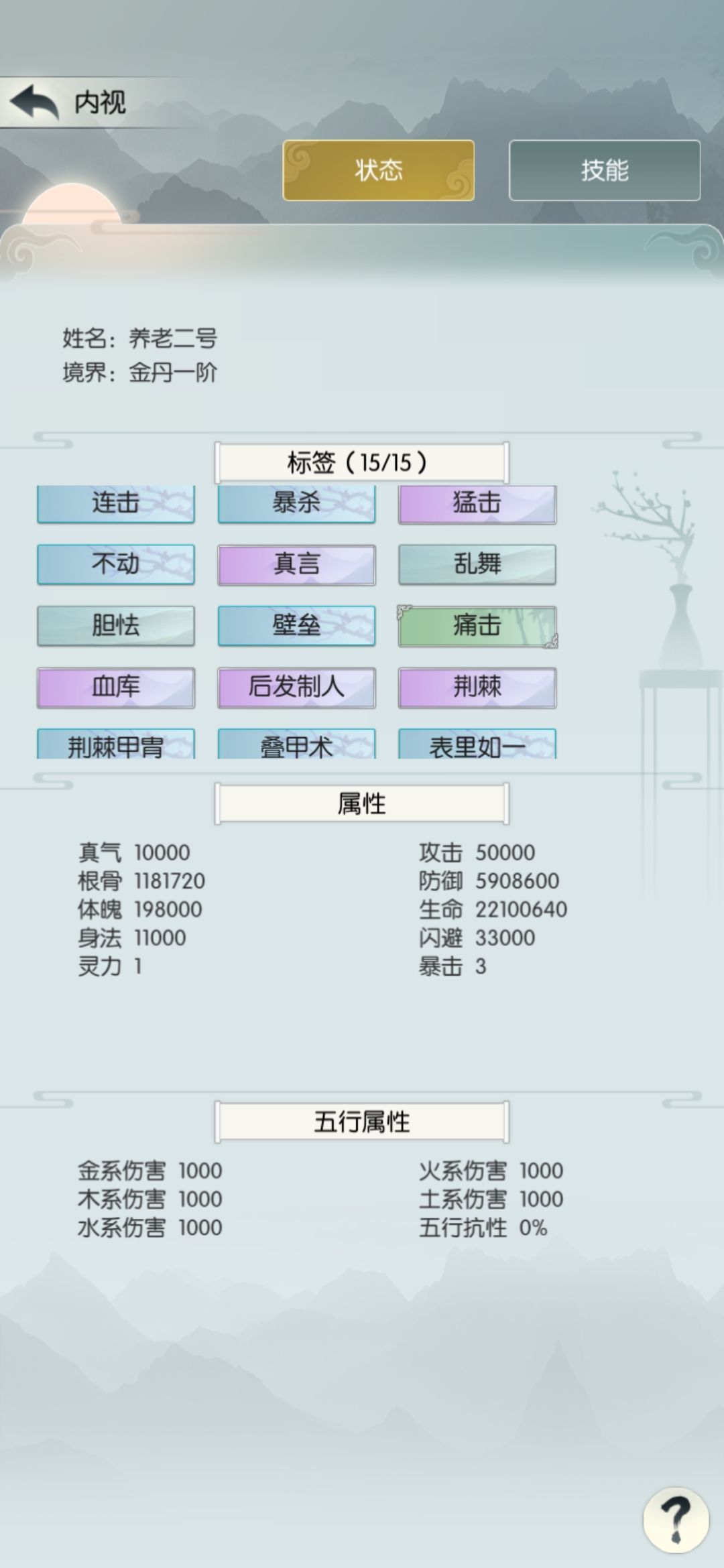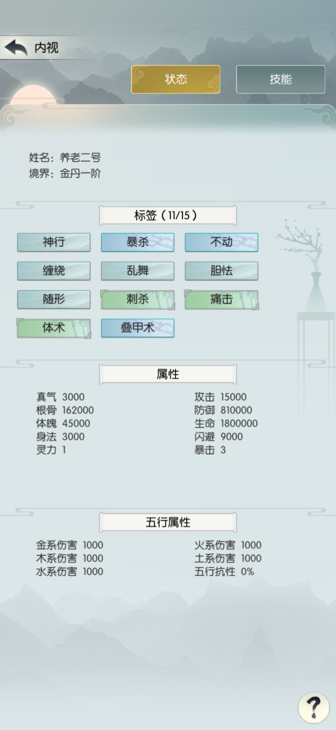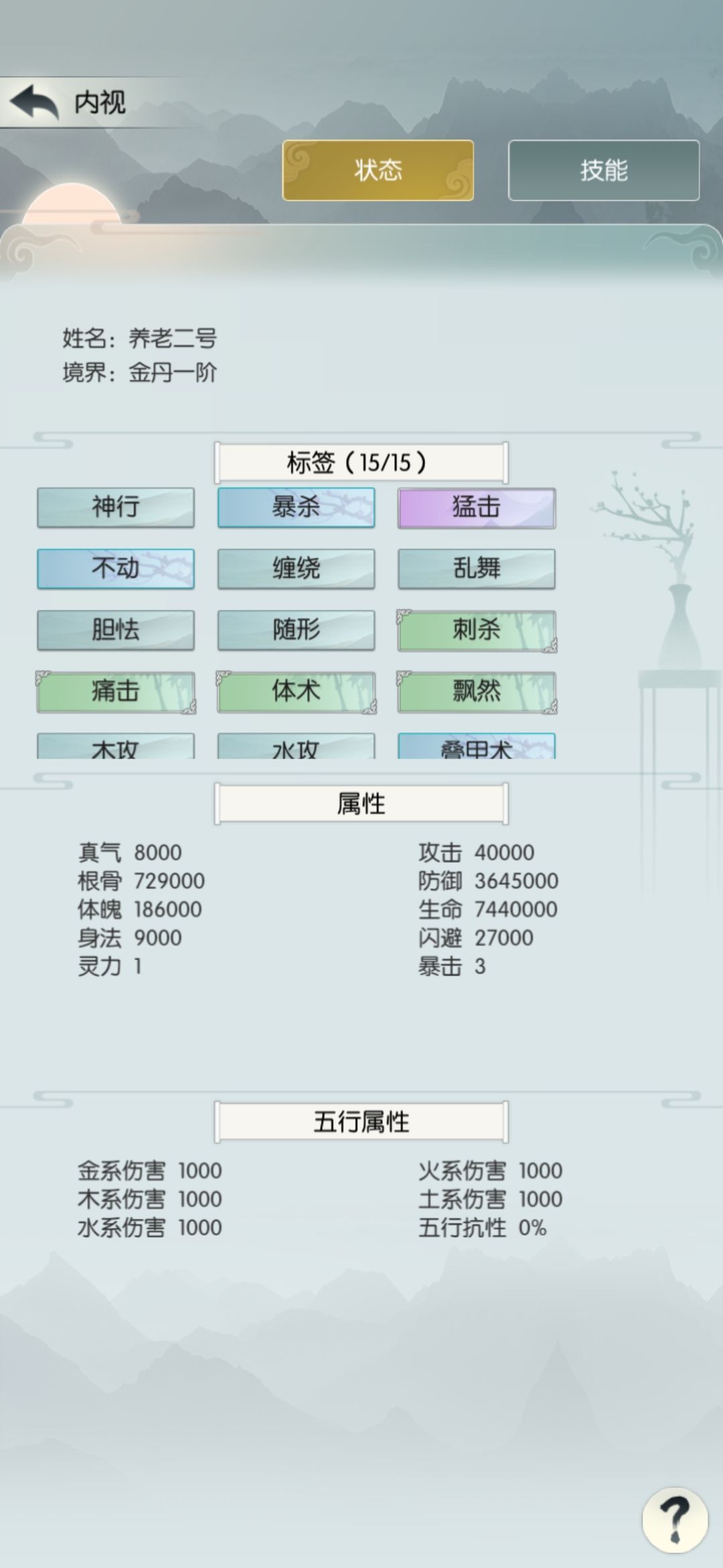 今天的目标没达成,希望明天发的工资能过吧。附属性和招式: