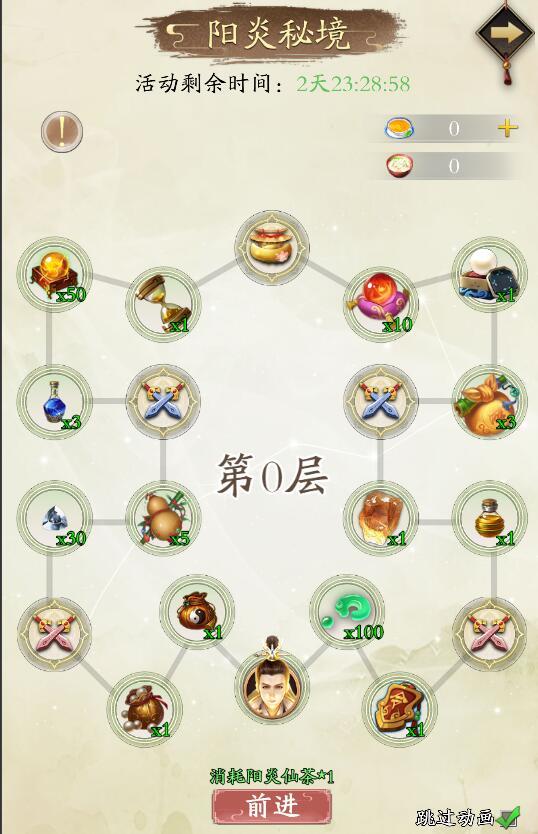 2、使用阳炎仙茶可随机前进1到6步,每次均会获得奖励、触发事件,以及进入始源堂购买折扣道具
